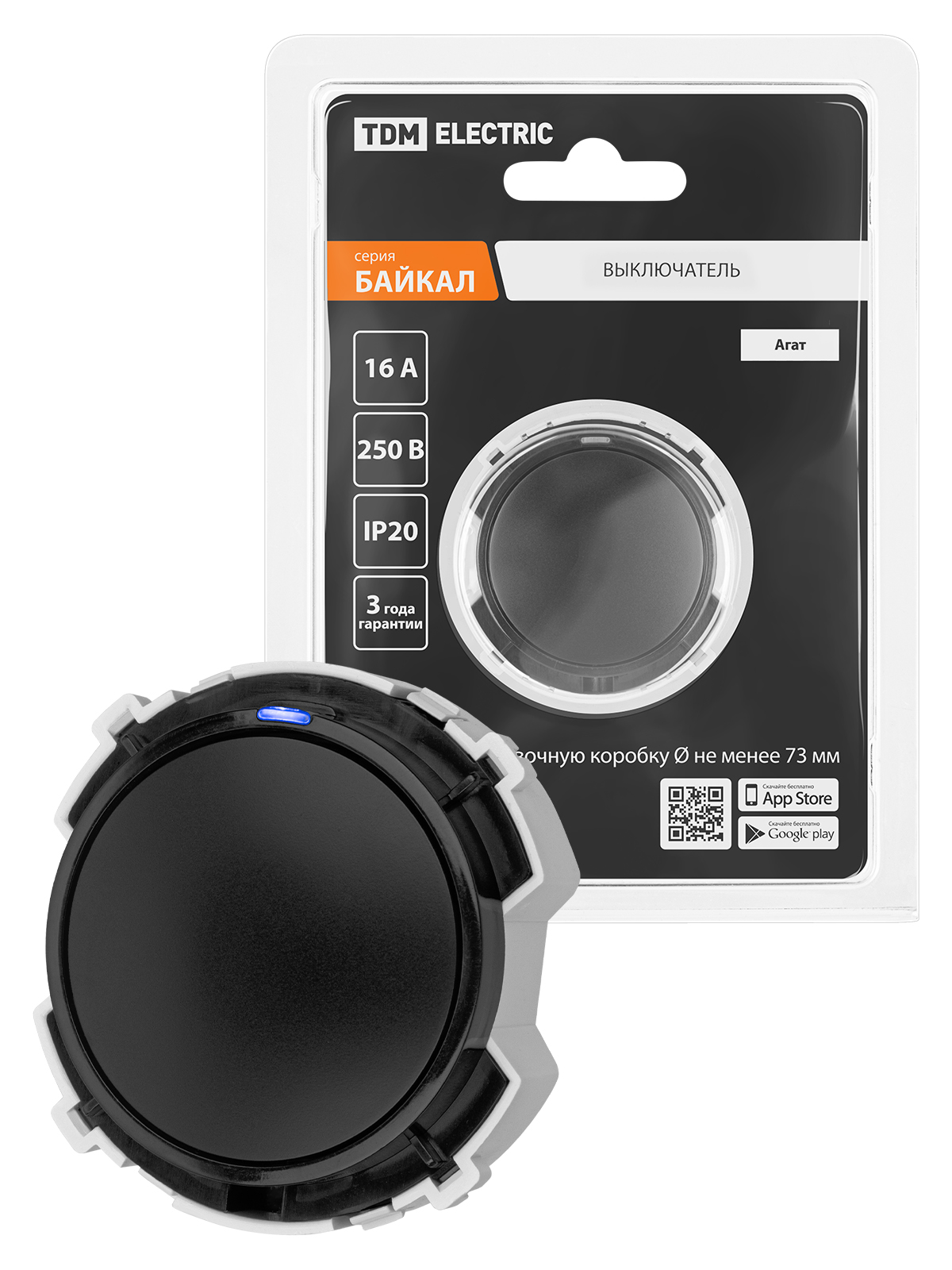 Выключатель 1-кл. 16А 250В проходной кнопочный механизм агат, "Байкал" TDM