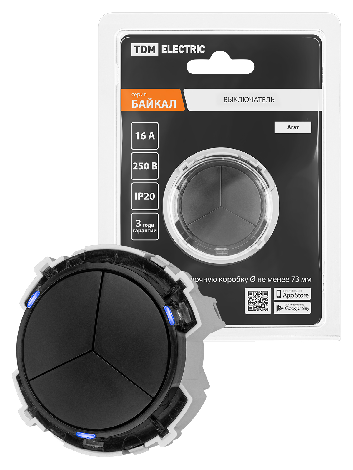 Наименование: Выключатель 3-кл. 16А 250В кнопочный механизм агат, "Байкал" TDM
