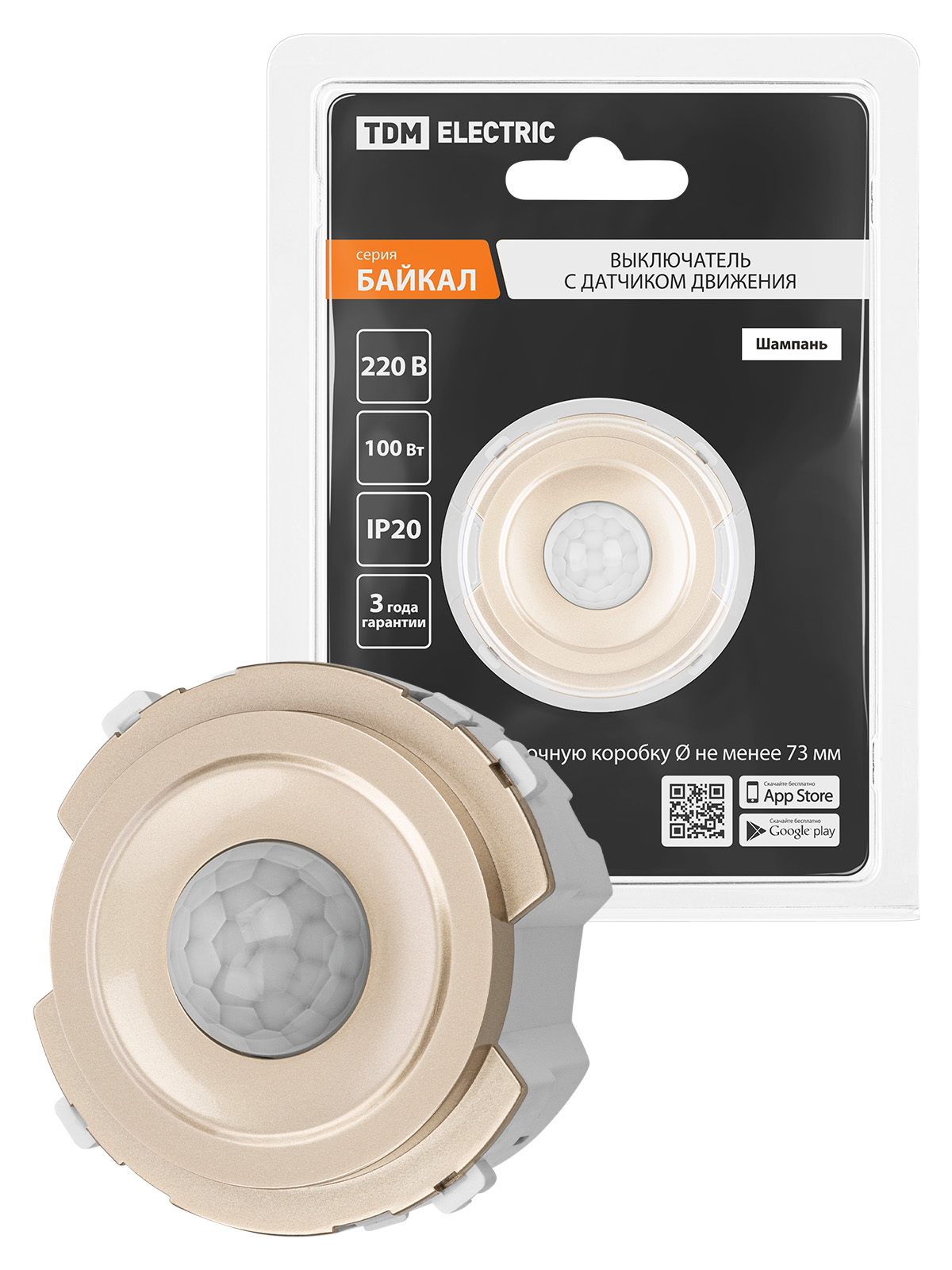 Наименование: Выключатель с датчиком движения 16А 250В шампань, "Байкал" TDM
