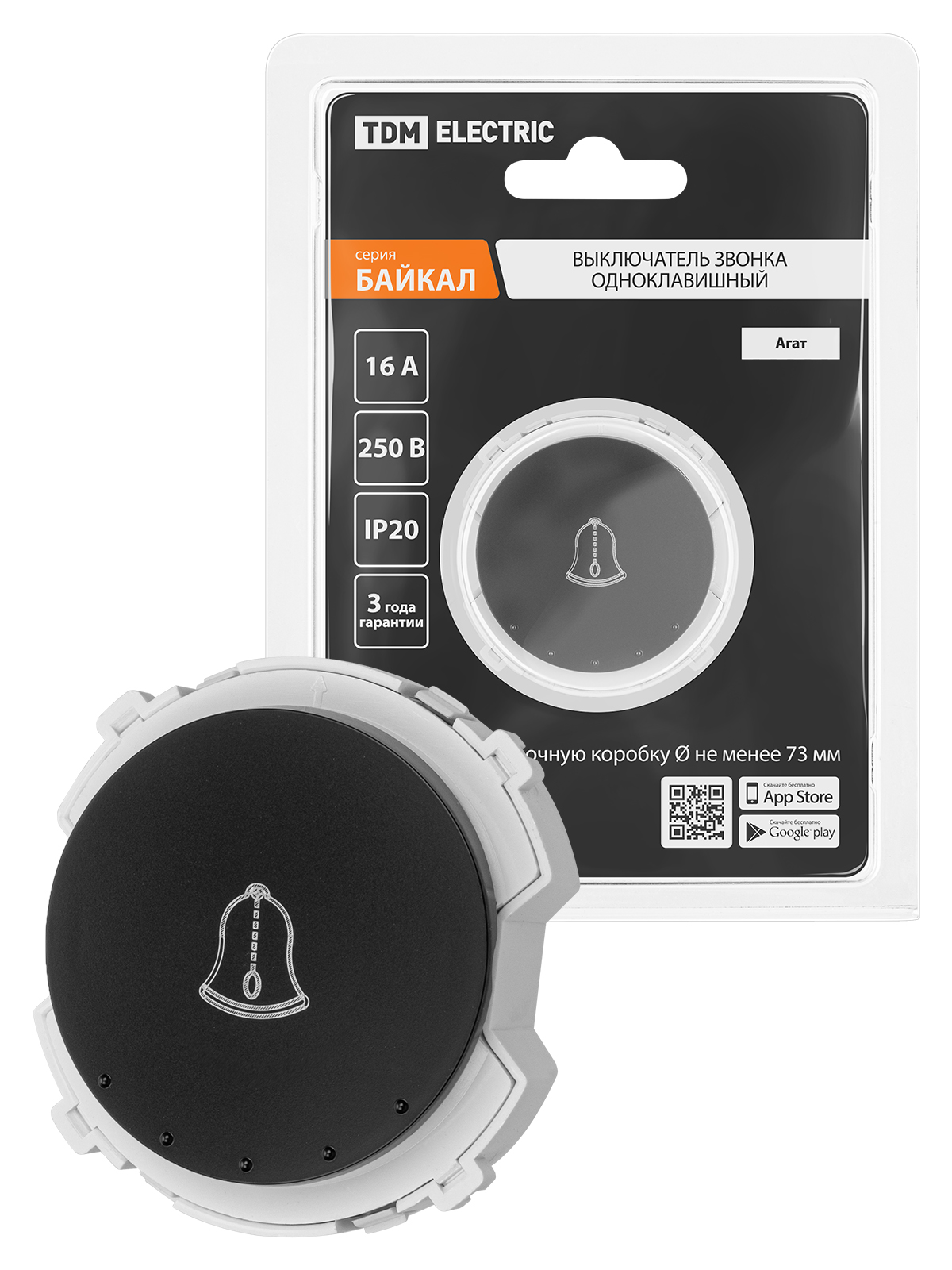 Наименование: Выключатель звонка 1-кл. 16А 250В агат, "Байкал" TDM