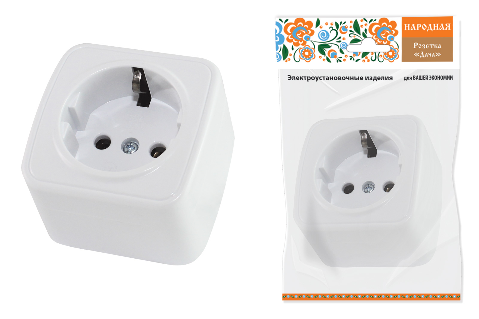 Наименование: Розетка 2П+З открытой установки IP20 16А, белая "Дача" Народная