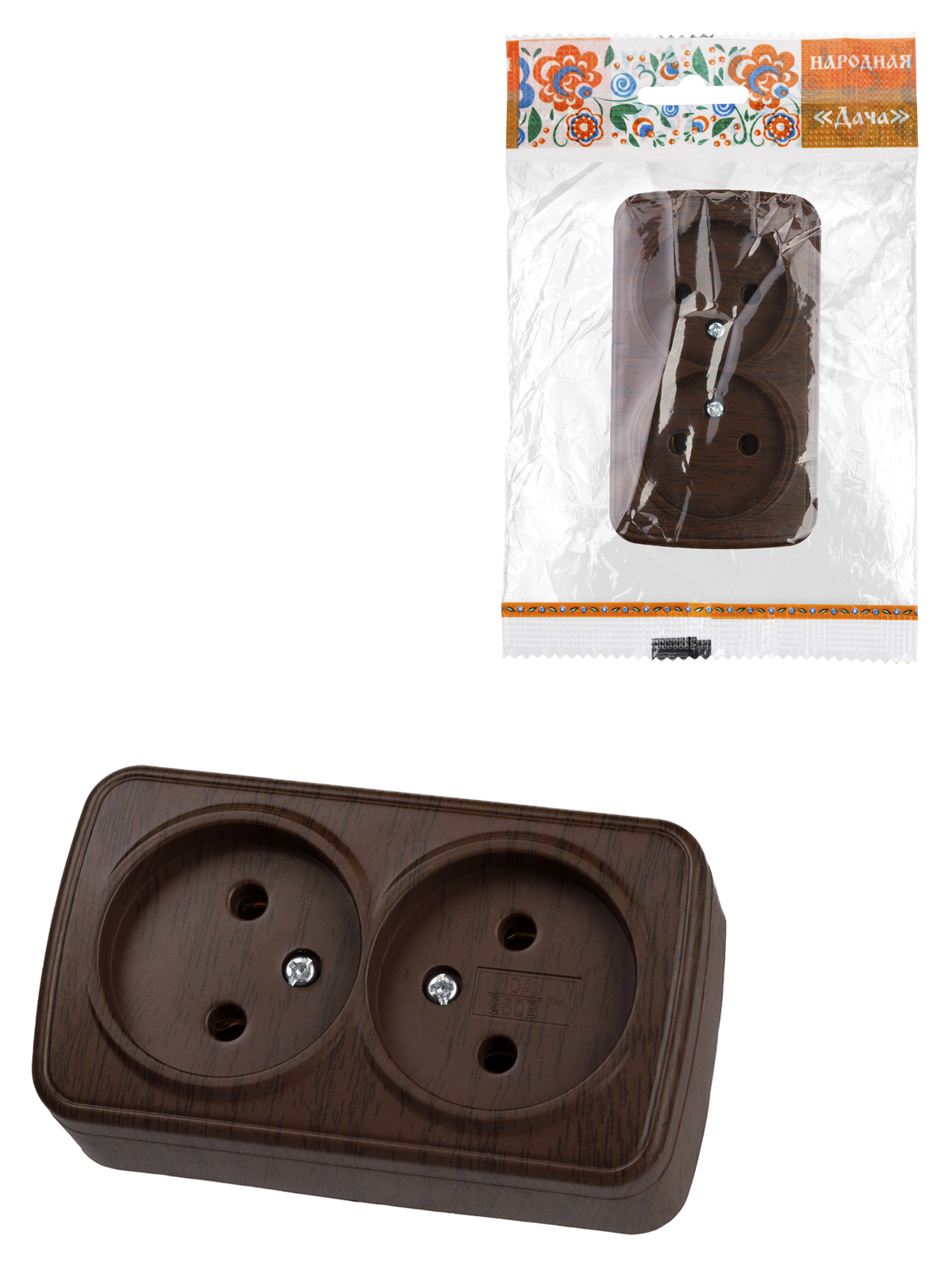 Наименование: Розетка двойная 2П открытой установки IP20 10А, венге "Дача" Народная