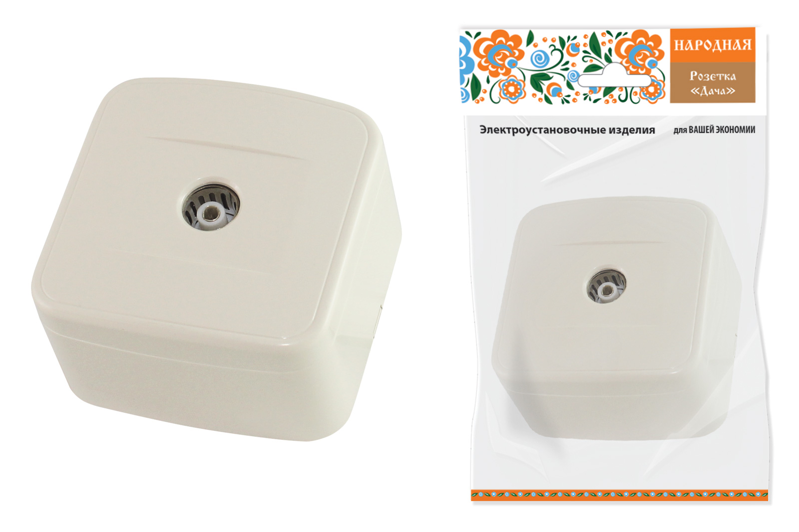 Наименование: Розетка TВ простая (0-2400 Гц,  "мама") открытой установки, IP20 сл. кость "Дача" Народная