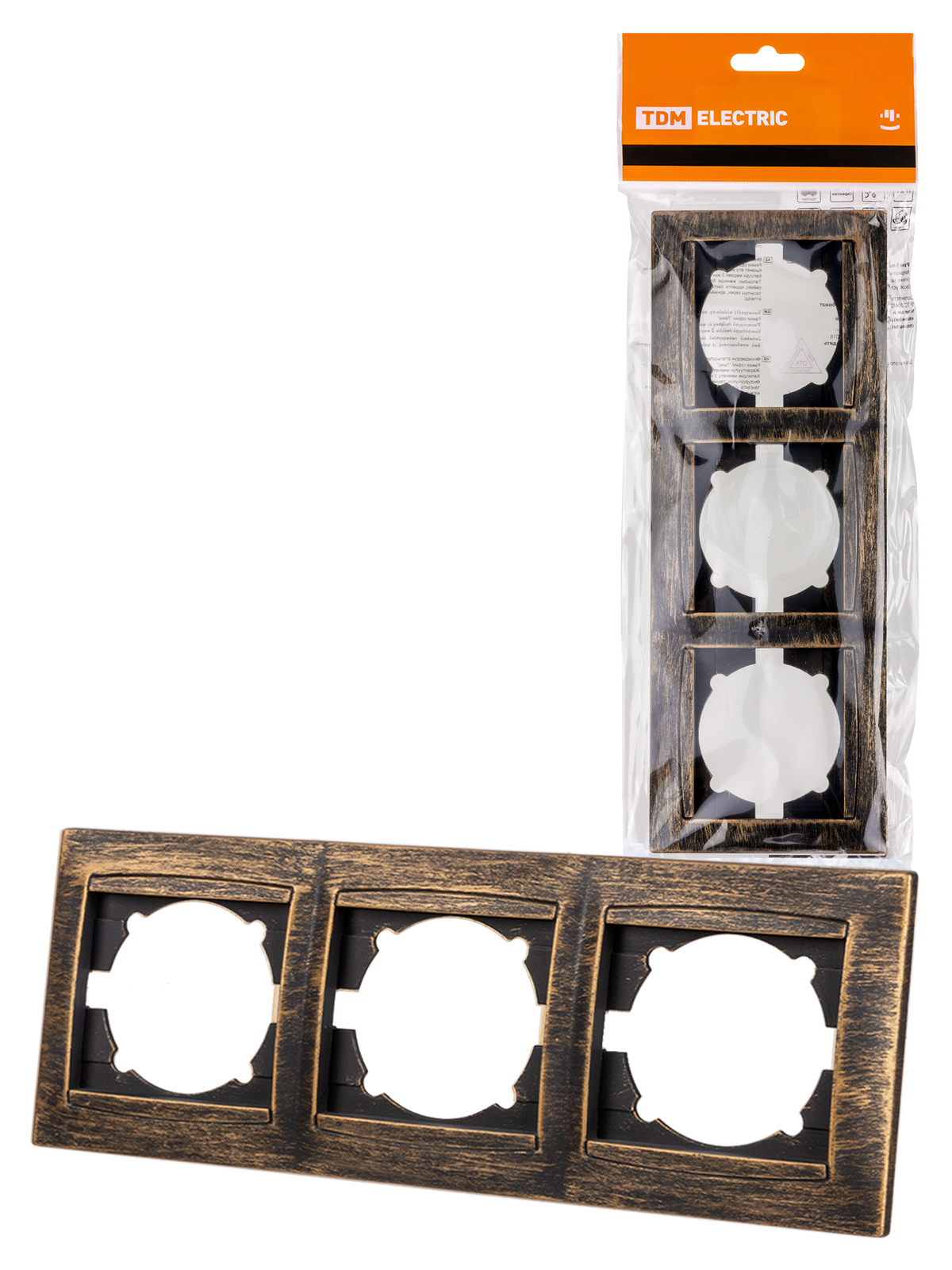 Наименование: Рамка 3-х постовая горизонтальная старинная бронза "Лама" TDM