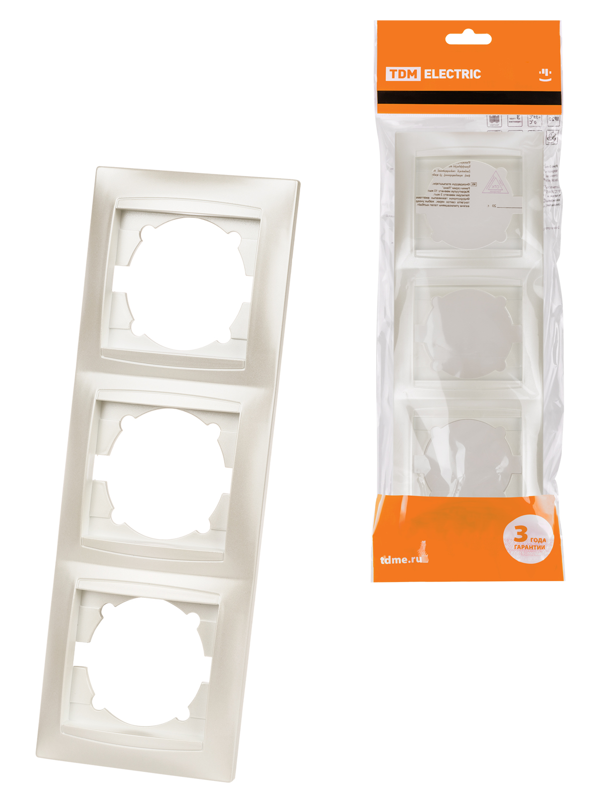 Наименование: Рамка 3-х постовая вертикальная перламутр "Лама" TDM