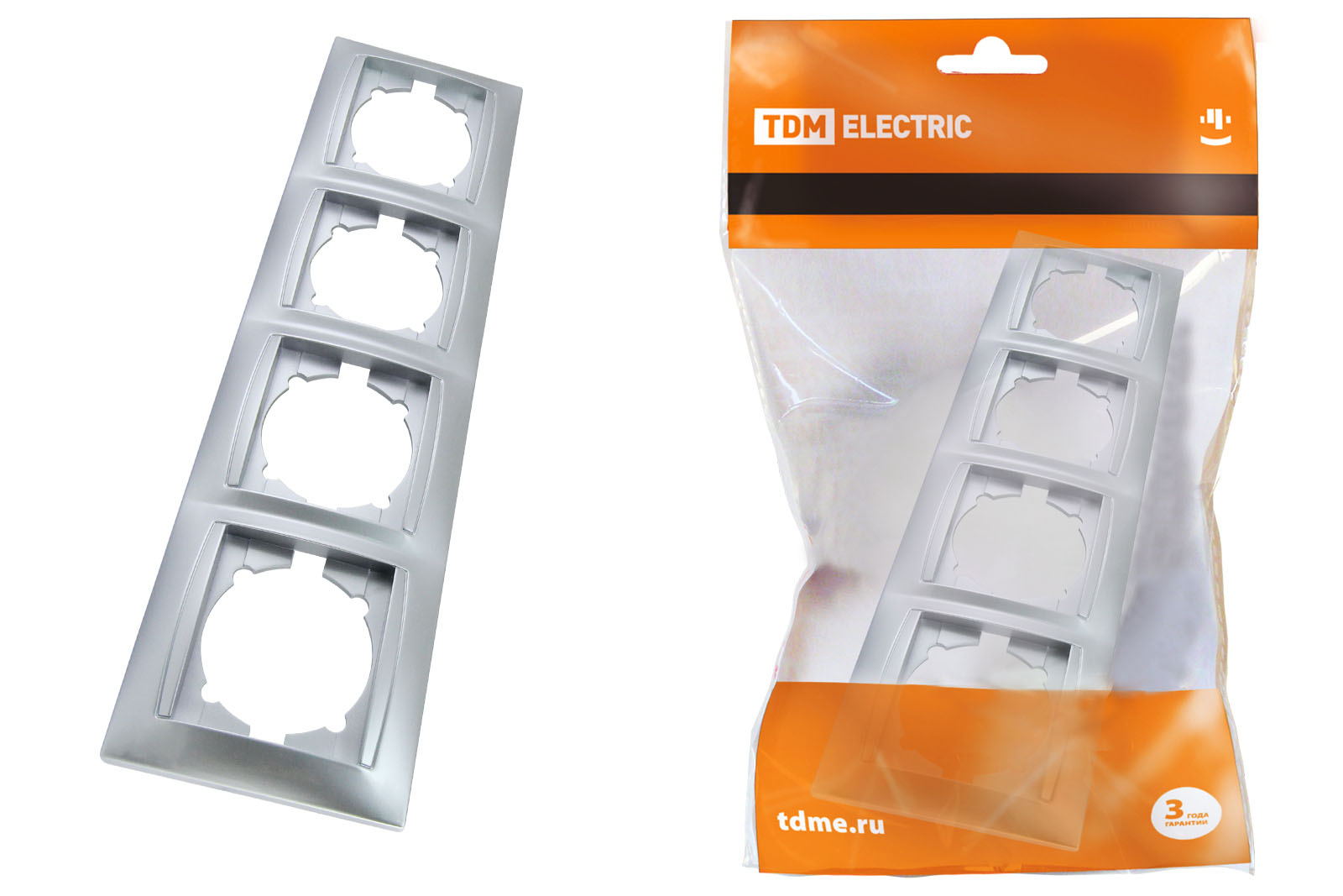 Наименование: Рамка 4-х постовая горизонтальная серебр. металлик "Лама" TDM