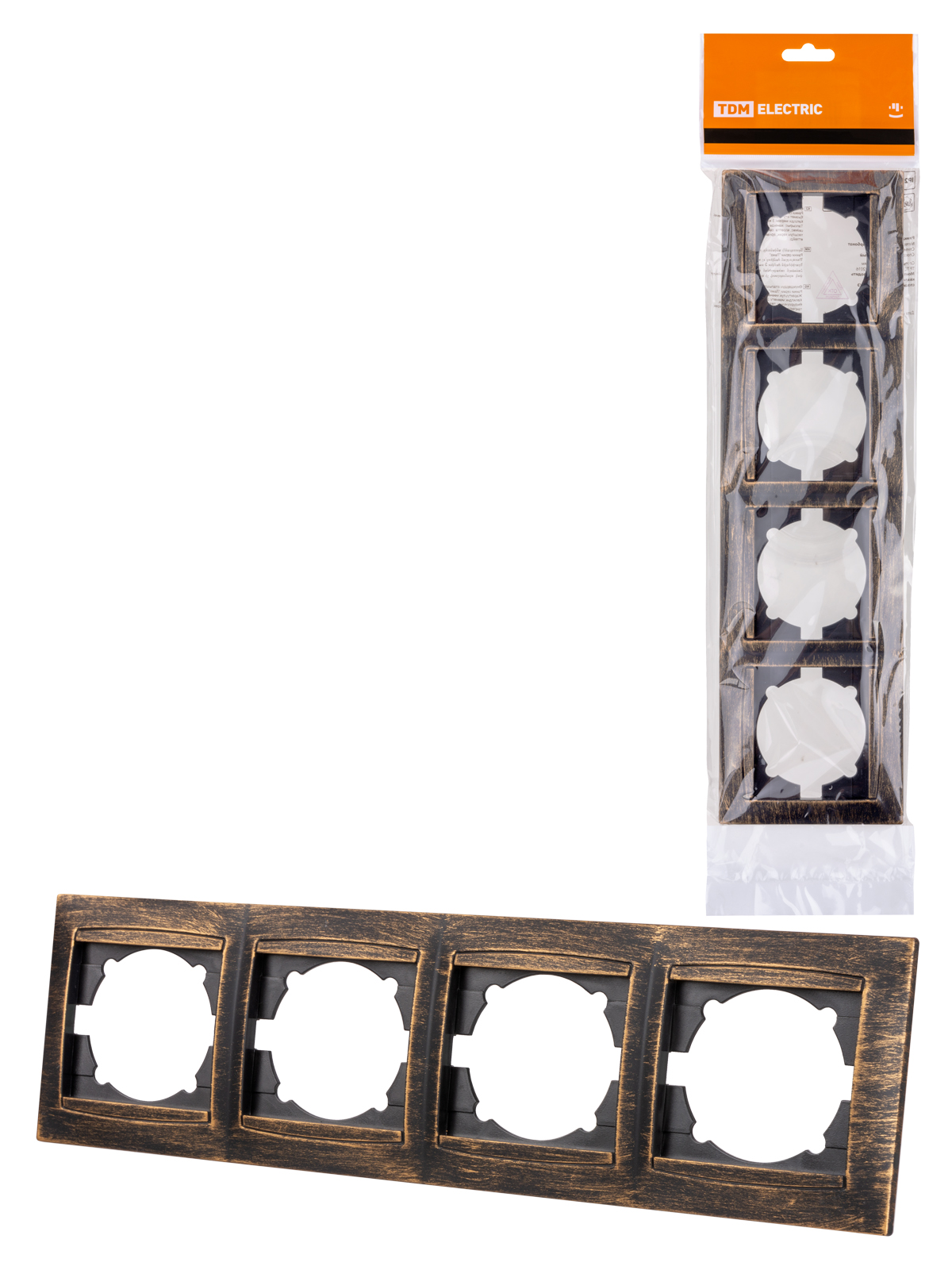 Наименование: Рамка 4-х постовая горизонтальная старинная бронза "Лама" TDM