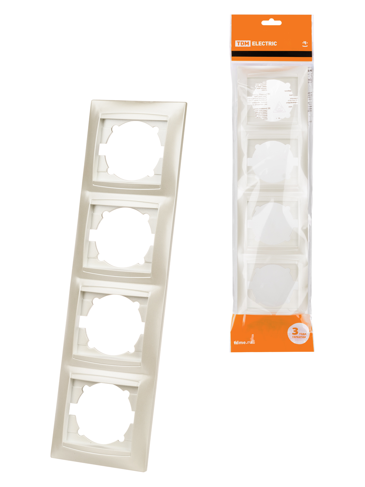 Наименование: Рамка 4-х постовая вертикальная перламутр "Лама" TDM