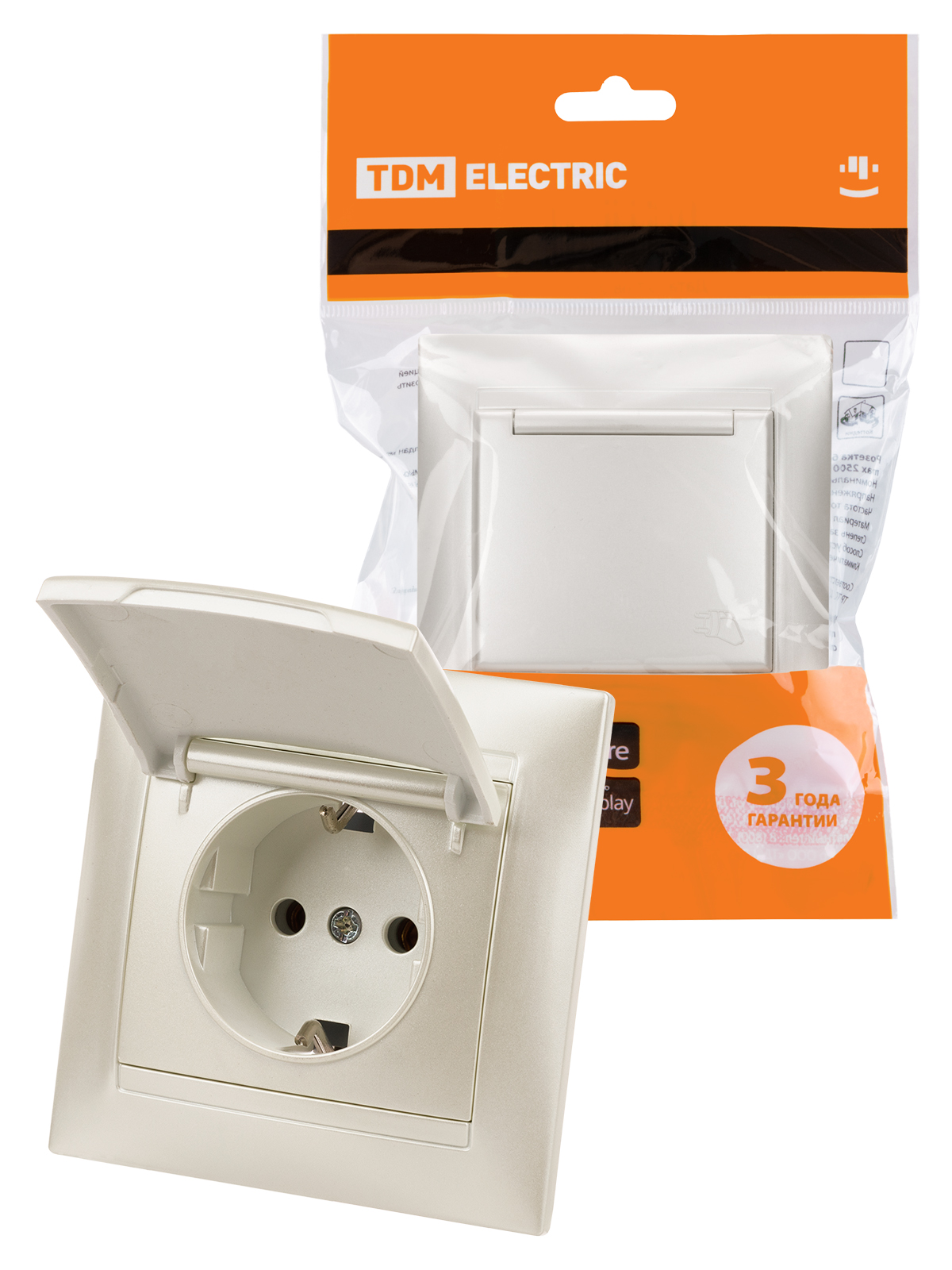 Наименование: Розетка 2П+З 16А 250В  IP44 с крышкой перламутр "Лама" TDM