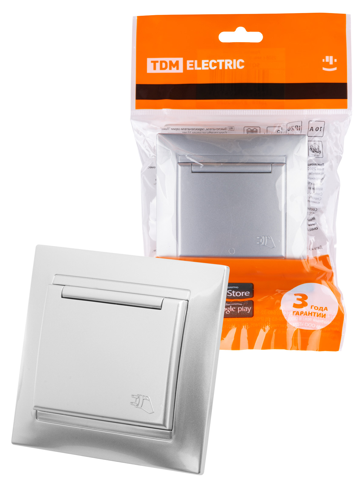 Наименование: Розетка 2П+З 16А 250В IP44 с крышкой серебр. металлик "Лама" TDM
