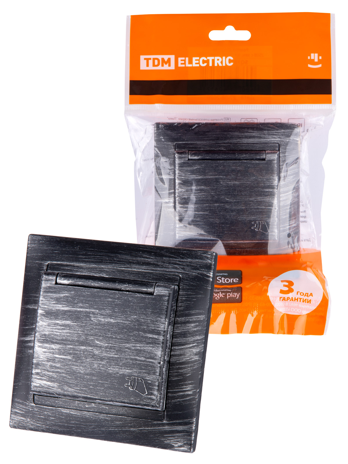 Наименование: Розетка 2П+З 16А 250В IP44 с крышкой старинное серебро "Лама" TDM