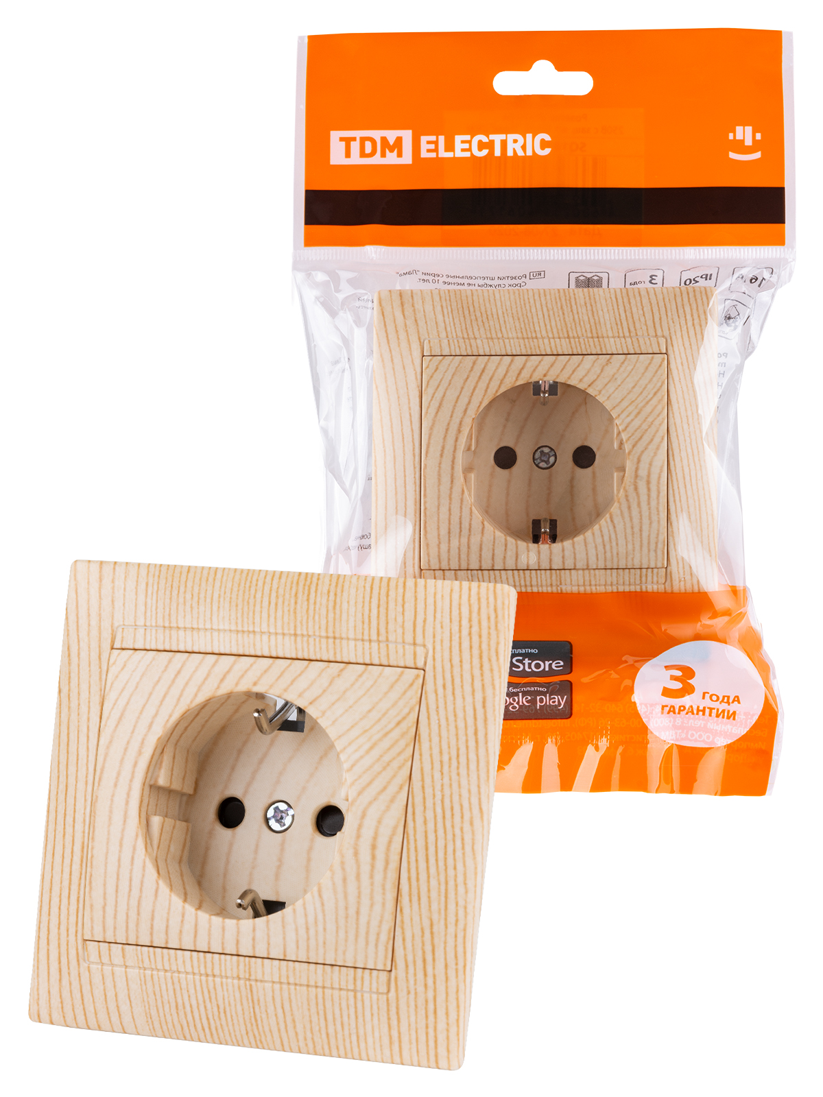Наименование: Розетка 2П+З 16А 250В с защ. шт. сосна "Лама" TDM