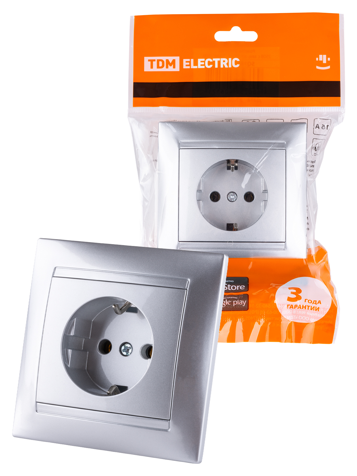 Наименование: Розетка 2П+З 16А 250В серебр. металлик "Лама" TDM
