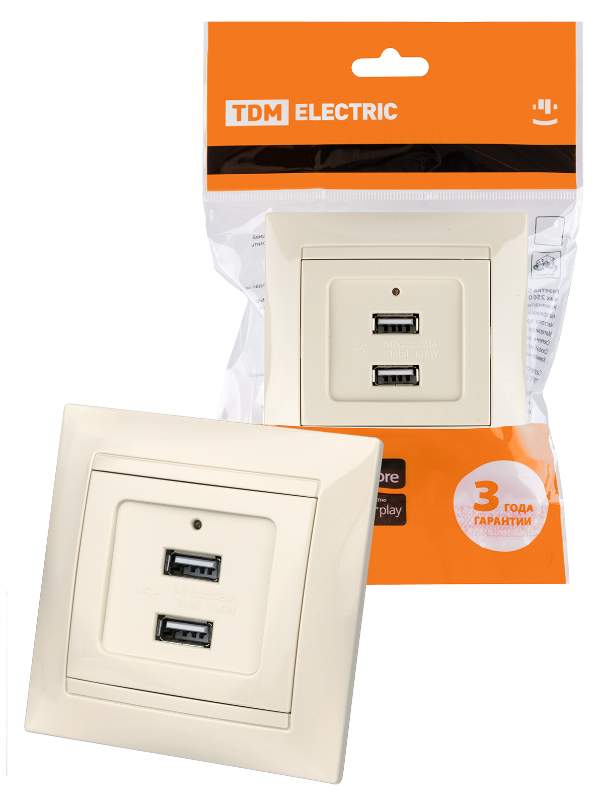 Наименование: Розетка 2USB порт 2,1А 5В сл. кость "Лама" TDM