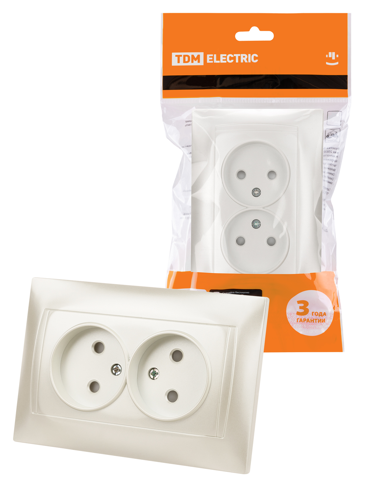 Наименование: Розетка двойная 2П 10А 250В с защ. шт. перламутр "Лама" TDM