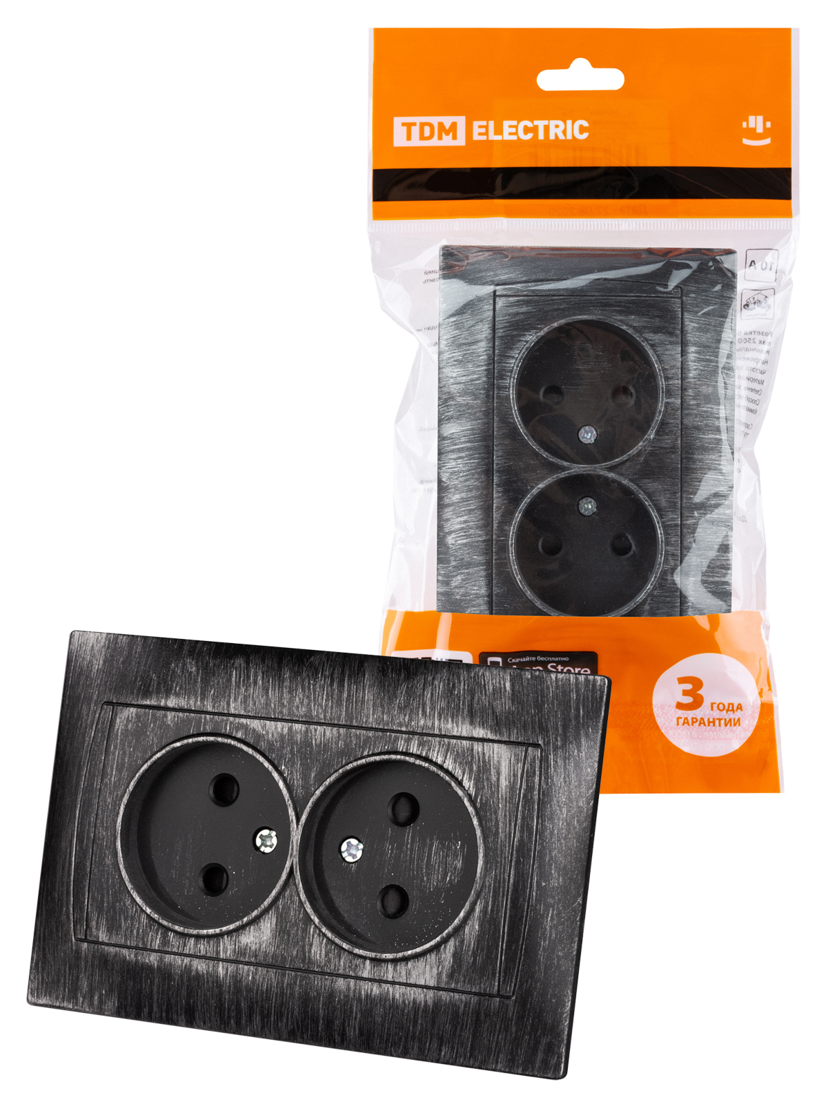 Наименование: Розетка двойная 2П 10А 250В с защ. шт. старинное серебро "Лама" TDM