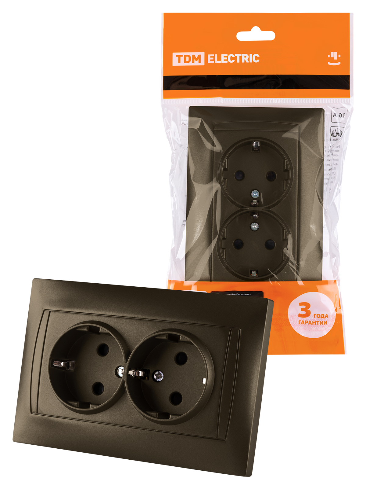 Наименование: Розетка двойная 2П+З 16А 250В с защ. шт. бронза "Лама" TDM