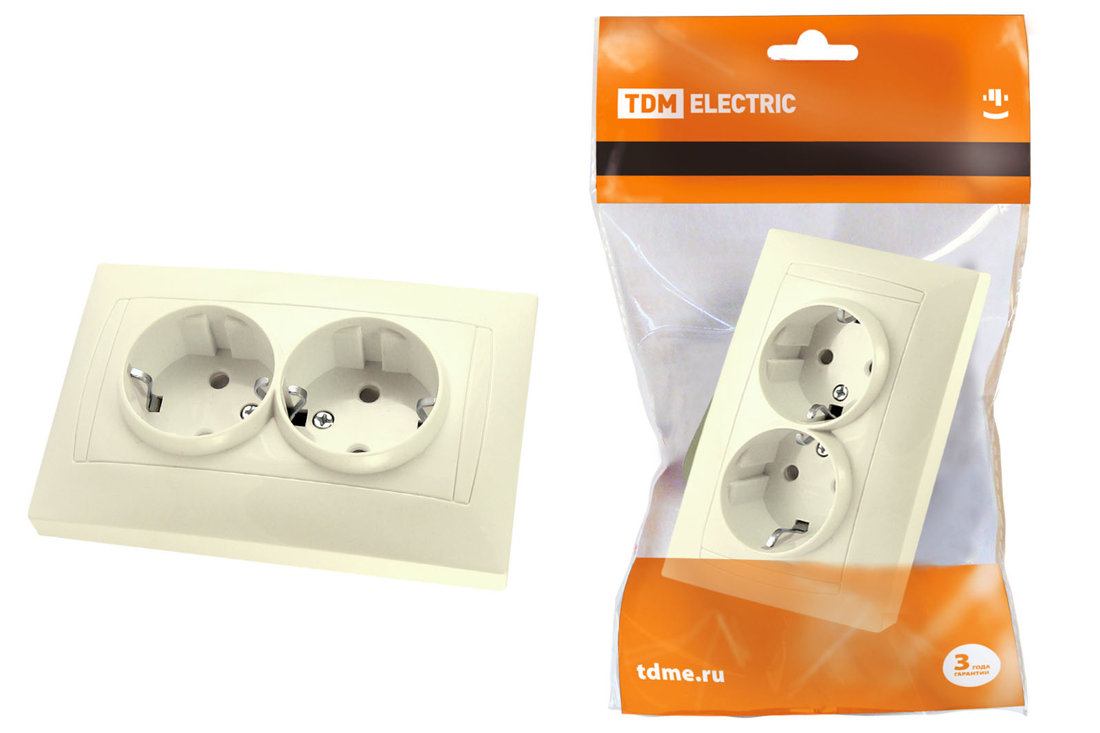 Наименование: Розетка двойная 2П+З 16А 250В с защ. шт. сл. кость "Лама" TDM