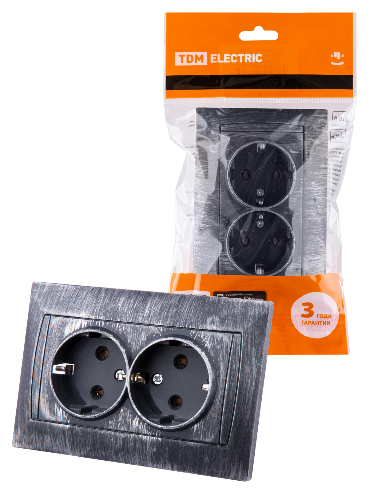 Наименование: Розетка двойная 2П+З 16А 250В старинное серебро "Лама" TDM