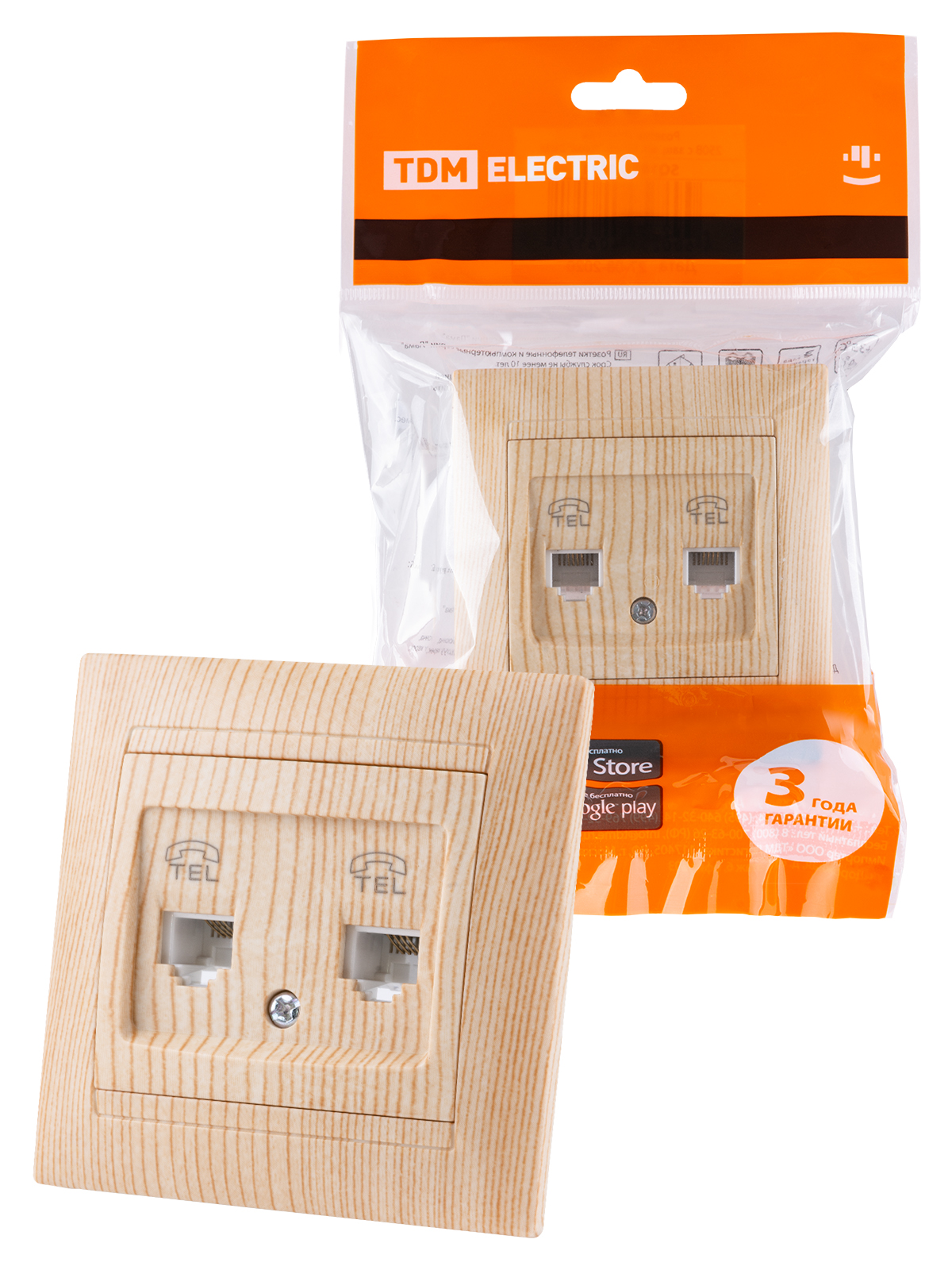 Наименование: Розетка двойная телефонная RJ11 сосна "Лама" TDM