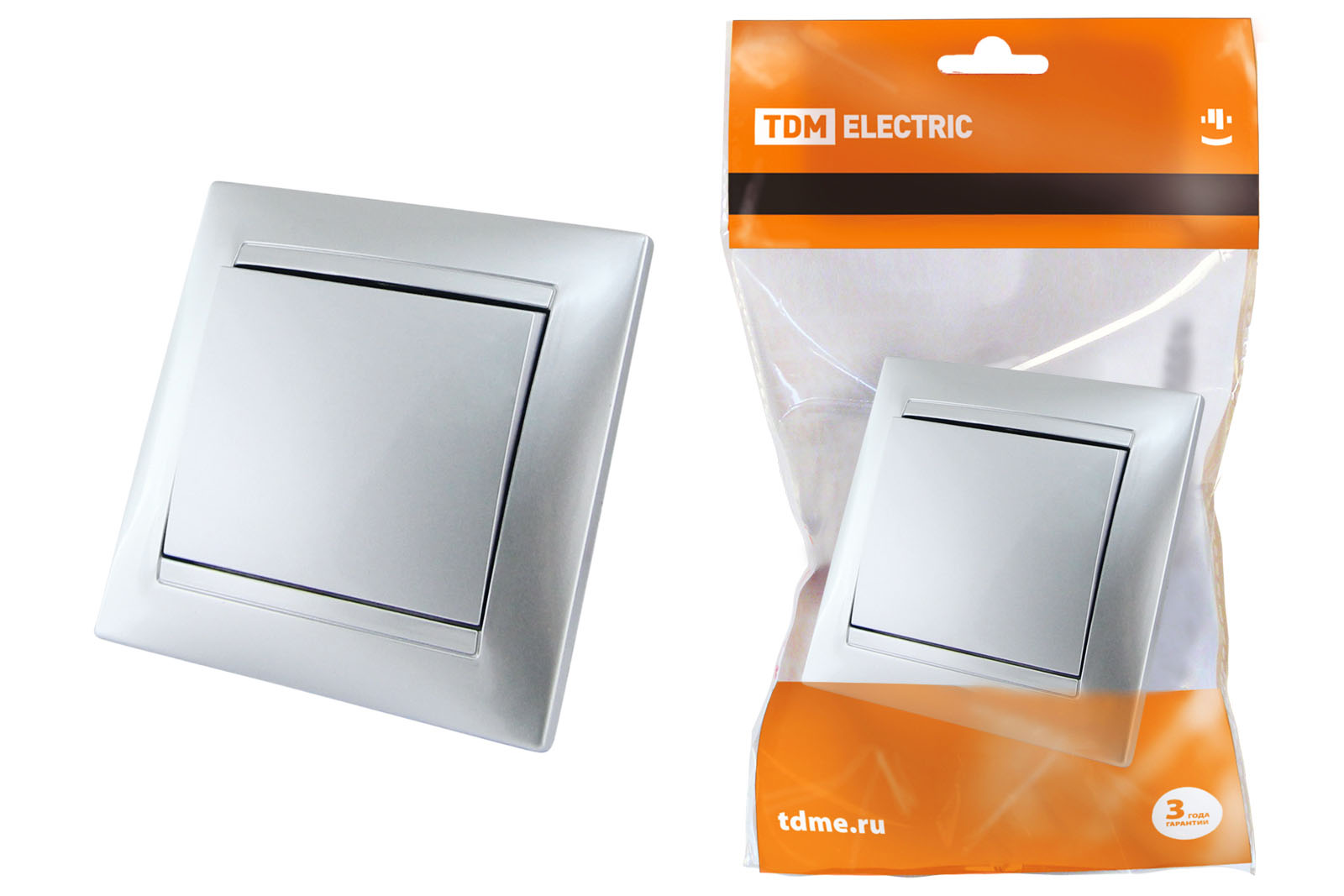 Наименование: Выключатель 1 кл. 10А серебр. металлик "Лама" TDM