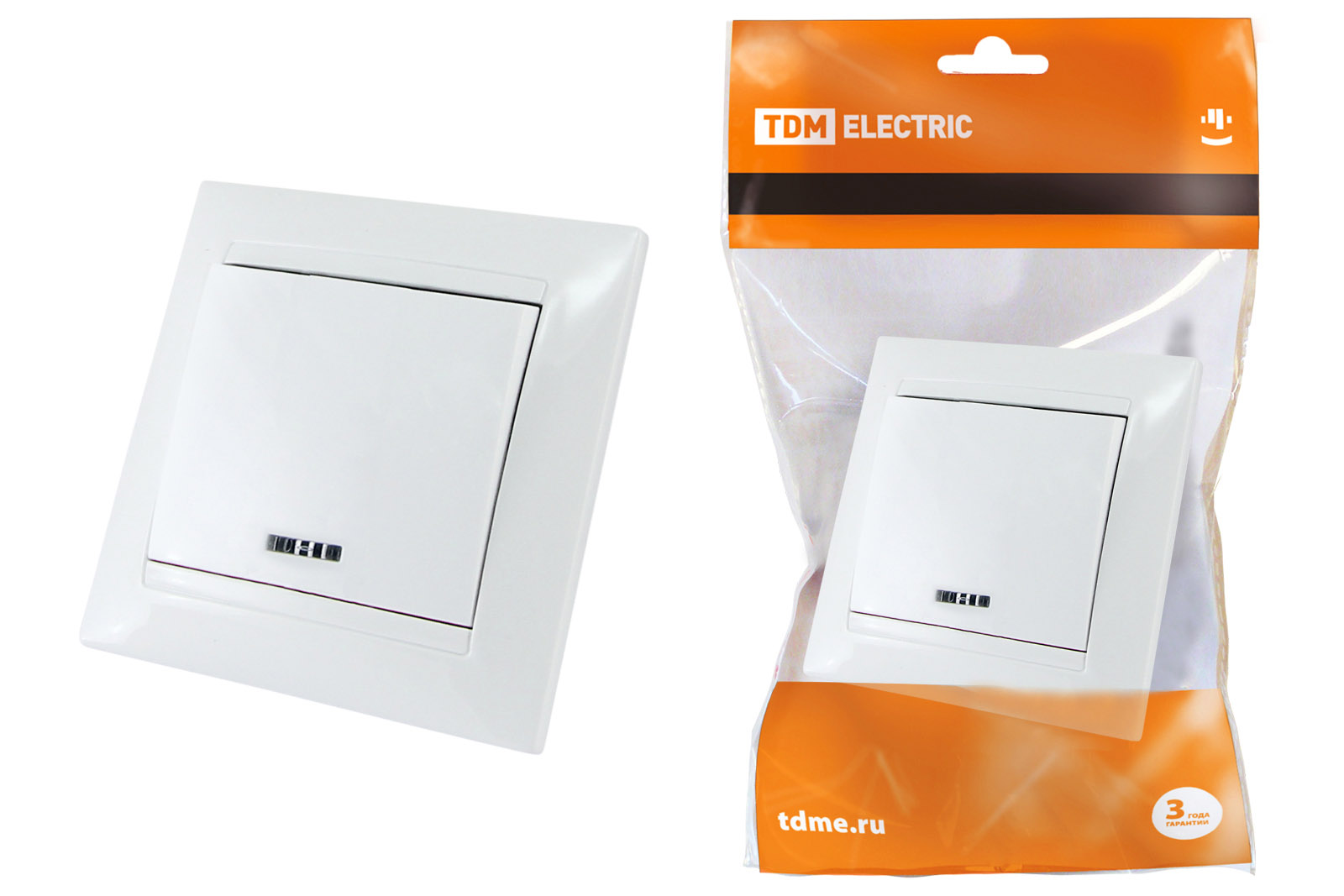 Выключатель 1 кл. с подсветкой 10А белый "Лама" TDM