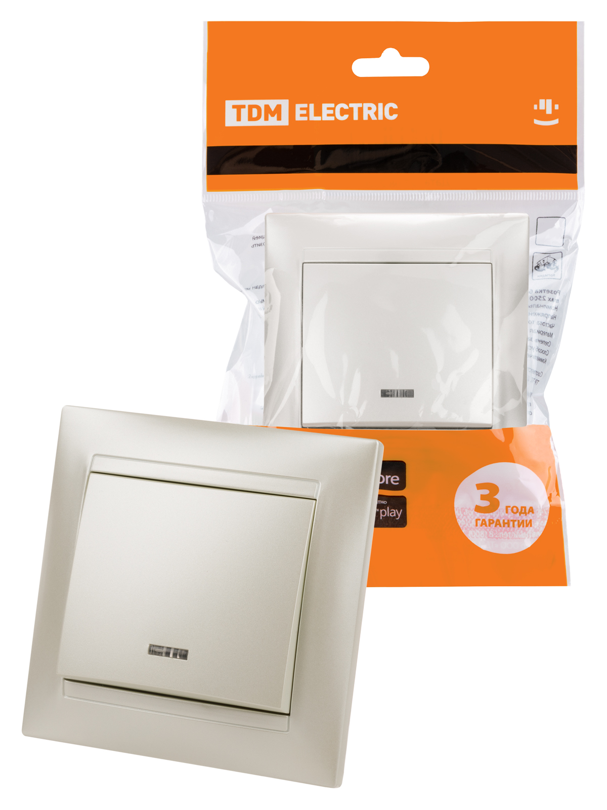 Выключатель 1 кл. с подсветкой 10А перламутр "Лама" TDM