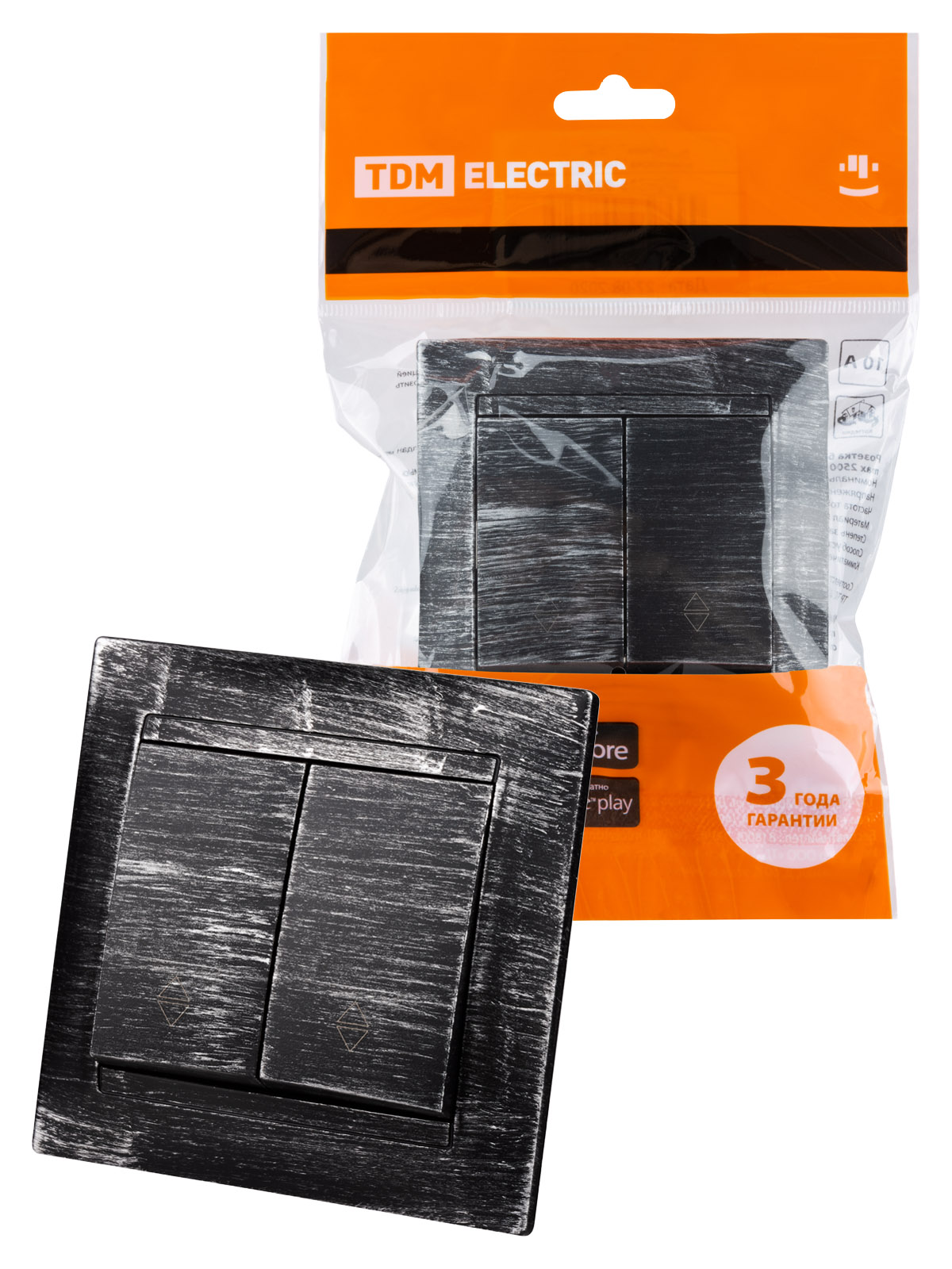 Наименование: Выключатель на 2 направления 2 кл. 10А старинное серебро "Лама" TDM