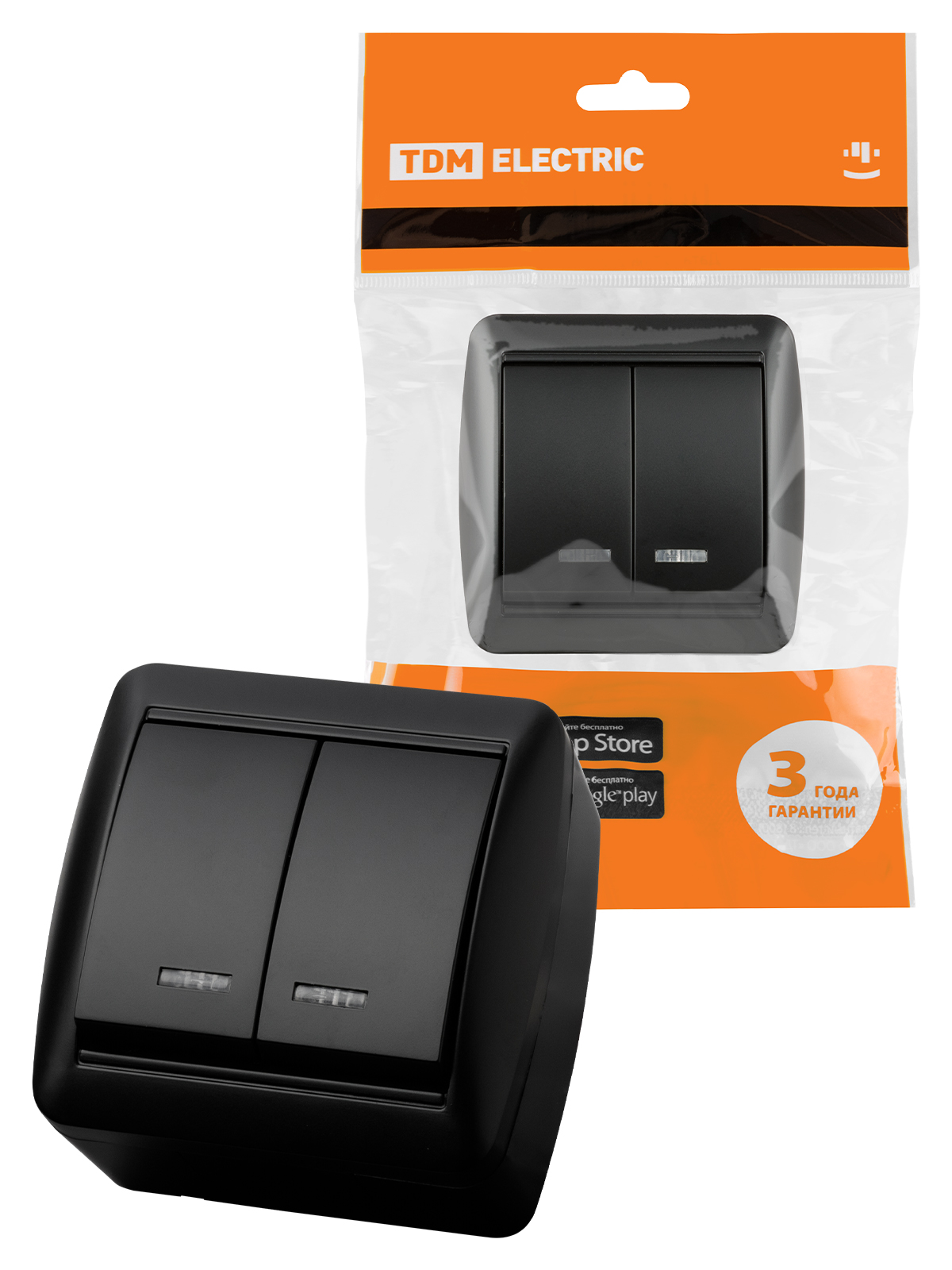 Наименование: Выключатель 2-кл. открытой установки с подсветкой IP44 10А графит "Селигер" TDM