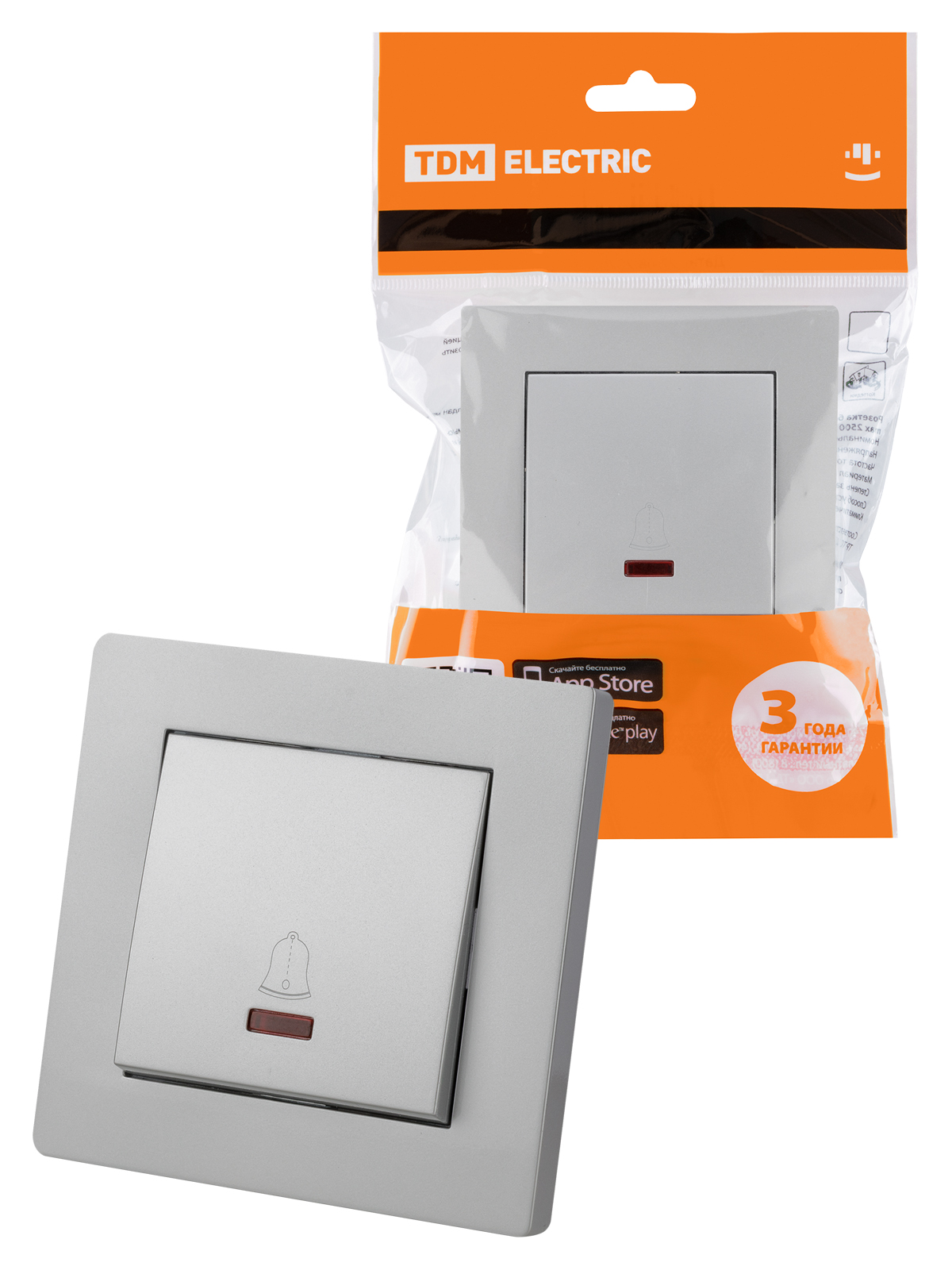 Наименование: Кнопка звонка с подсветкой 6А серебр. металлик "Сенеж" TDM