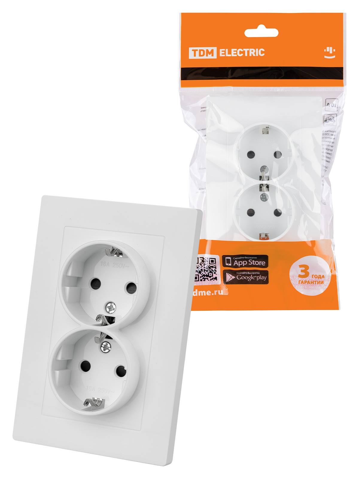 Наименование: Розетка двойная 2П+З 16А 250В с защ. шт. белая "Сенеж" TDM