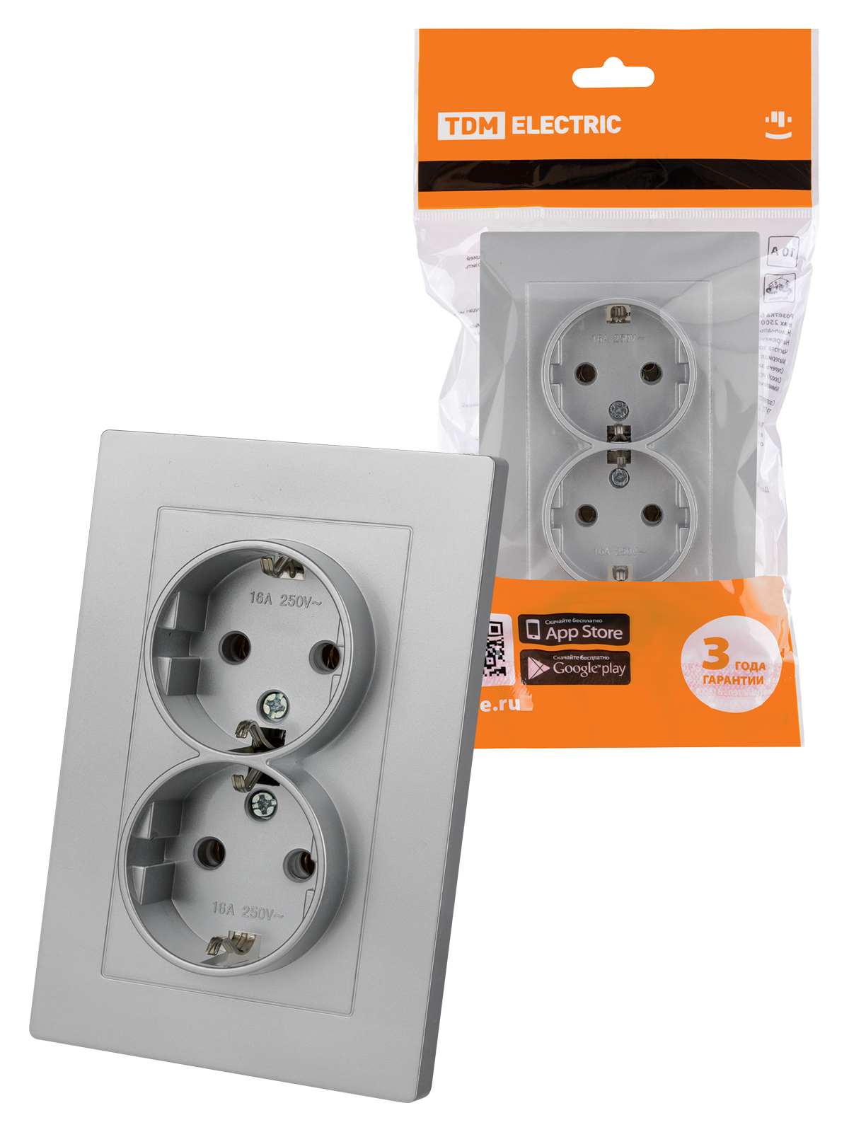Наименование: Розетка двойная 2П+З 16А 250В серебр. металлик "Сенеж" TDM