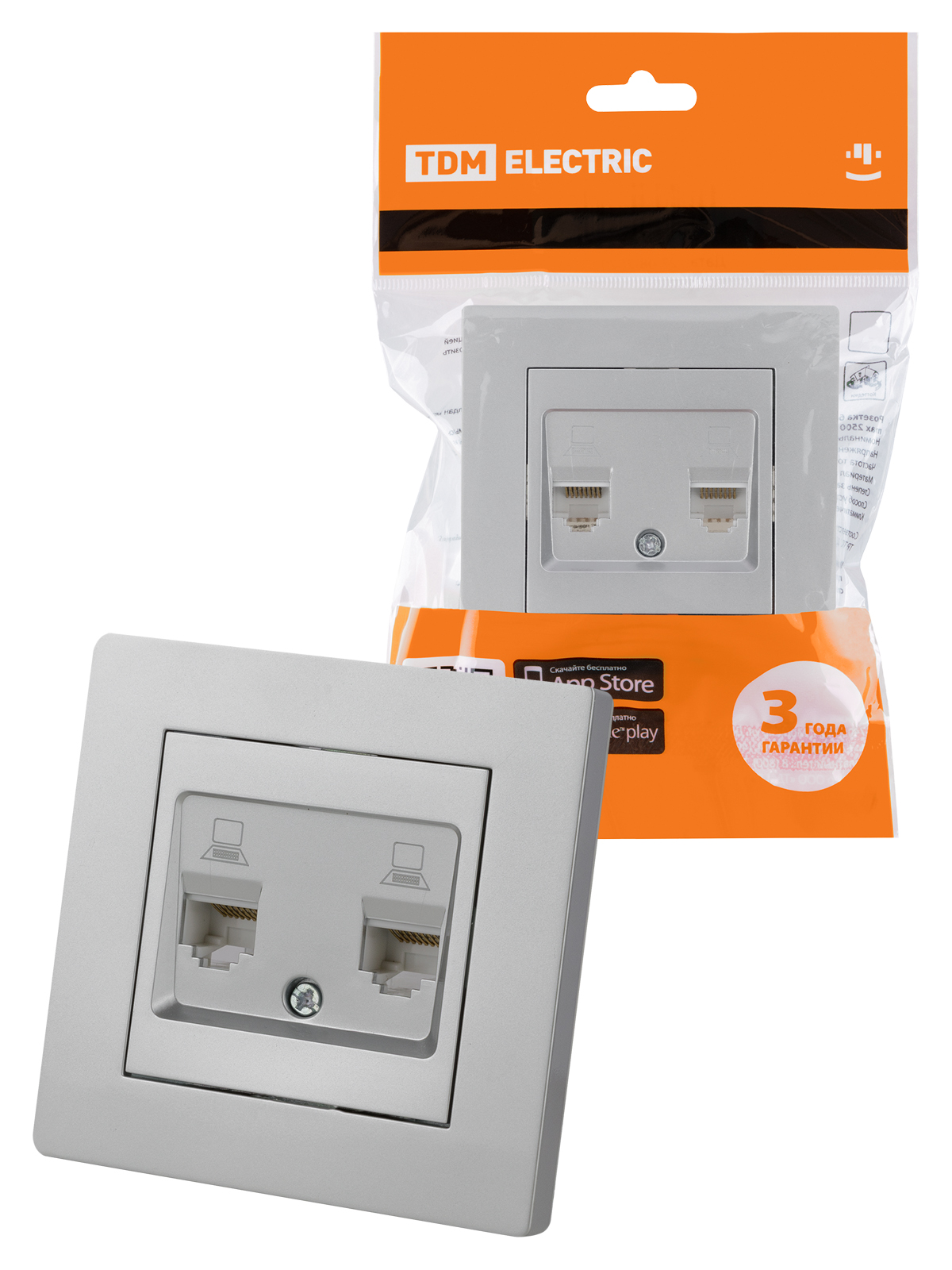 Наименование: Розетка компьютерная двойная RJ45 серебр. металлик "Сенеж" TDM