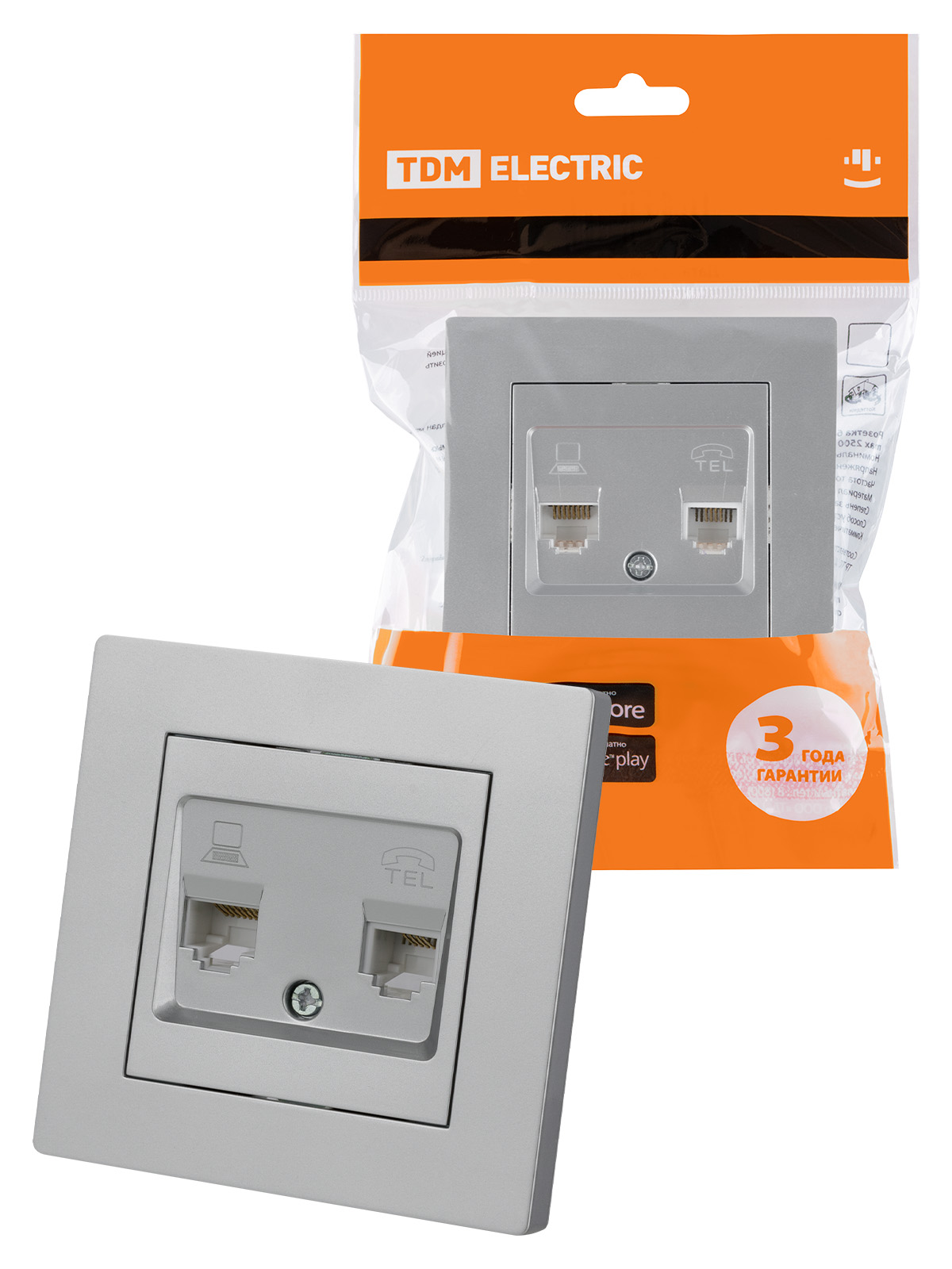 Наименование: Розетка телефонная RJ11 + компьютерная RJ45 серебр. металлик "Сенеж" TDM