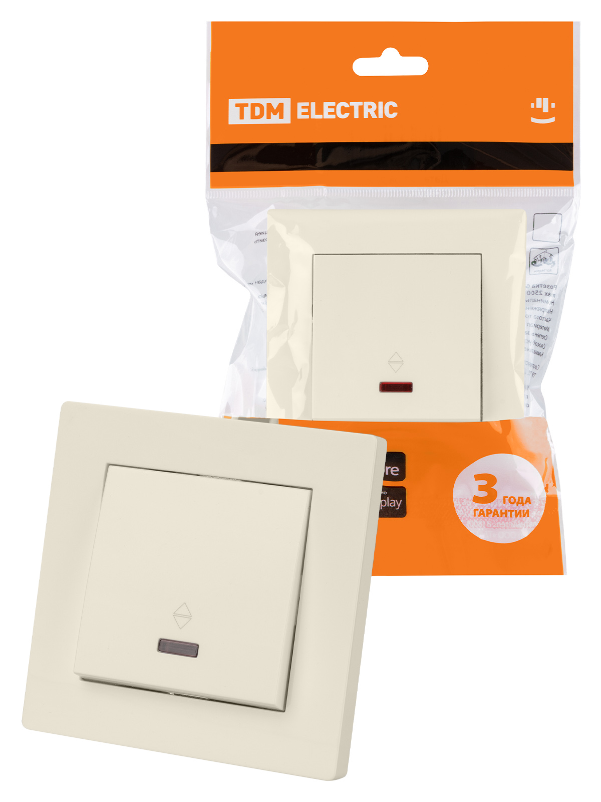 Наименование: Выключатель на 2 направления 1 кл. с подсветкой 10А сл. кость "Сенеж" TDM