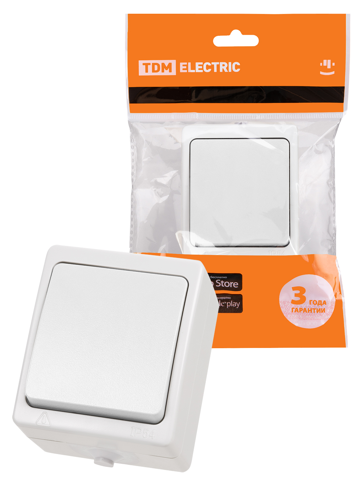Наименование: Выключатель 1-кл. открытой установки IP54 10А белый "Вуокса" TDM