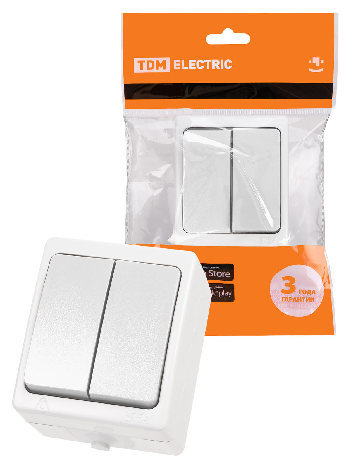 Наименование: Выключатель 2-кл. открытой установки IP54 10А белый "Вуокса" TDM