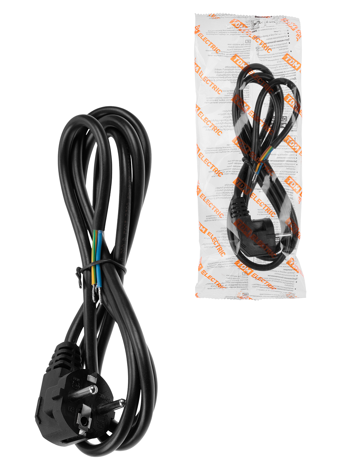 Наименование: Шнур сетевой с вилкой ПВС 3x0,75мм? 1,5м с/з черный TDM