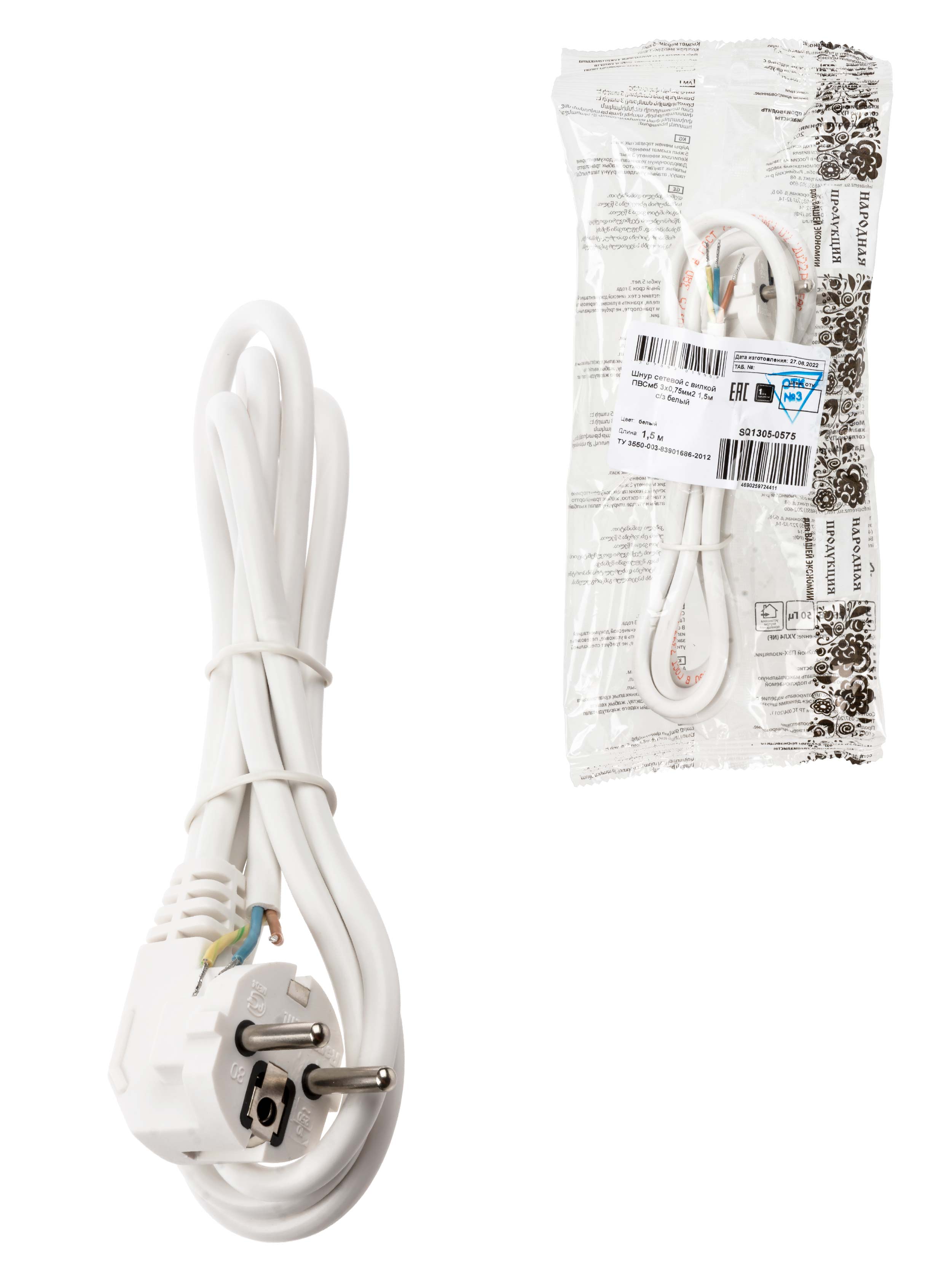 Наименование: Шнур сетевой с вилкой ПВСмб 3x0,75мм2 1,5м с/з белый Народный