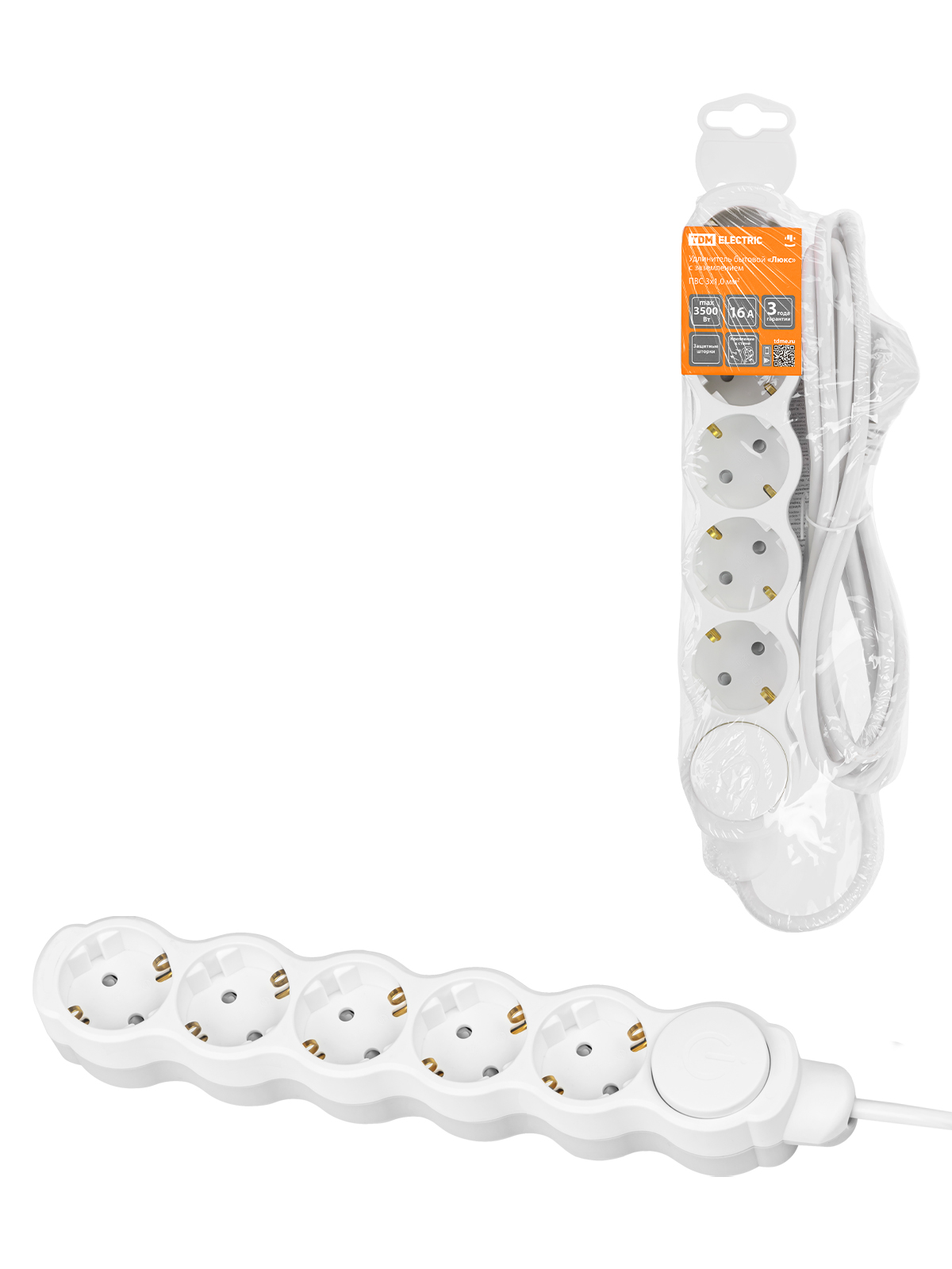 Наименование: Удлинитель бытовой "Люкс" УЛ05В выкл, 5 гнезд, 5м, с/з, с з/ш, ПВС 3х1мм2 16А/250В бело-серый TDM