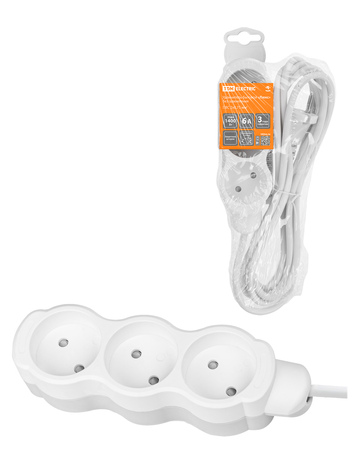 Наименование: Удлинитель бытовой "Люкс" УЛ3 3 гнезда, 3м, б/з, с з/ш, ПВС 2х0,75 мм2 10А/250В бело-серый TDM