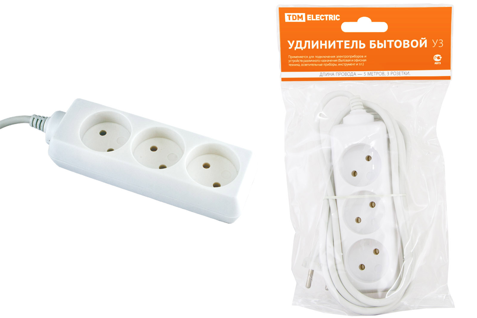 Наименование: Удлинитель бытовой У3 3 гнезда, 5метров, без заземления, ПВС 2х0,75мм2 10А/250В TDM