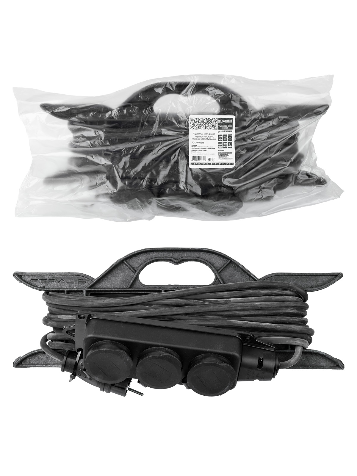 Наименование: Удлинитель-шнур силовой на рамке, каучук, КГ, IP44, 3 гнезда с/з, 3500 Вт, 10 м Народный