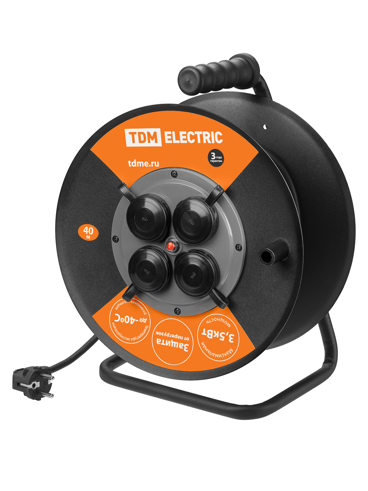 Наименование: Удлинитель силовой УХз16-004 TDM (метал. катушка, А3, 4 места IP44/40м КГ 3х1,5)