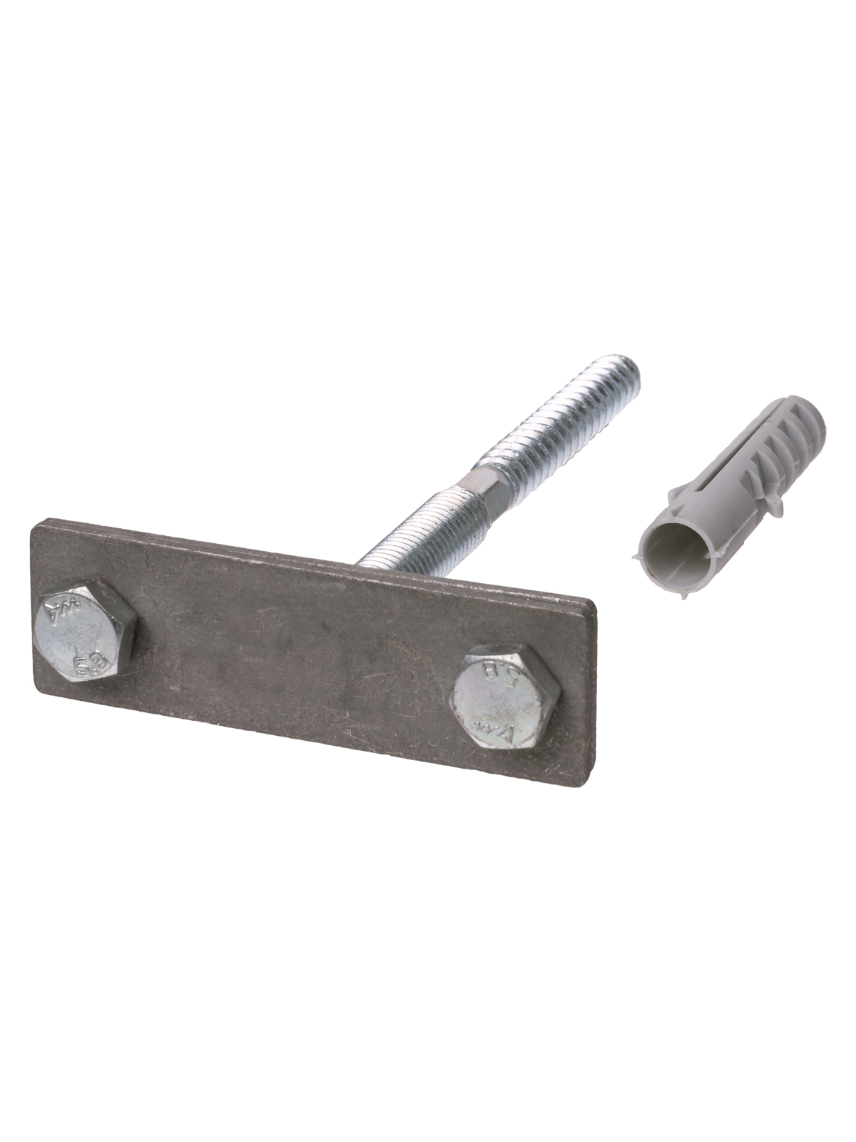 Наименование: Держатель фасадный для полосы шириной 25-50 мм длина 120 мм с дюбелем, стальной зажим TDM