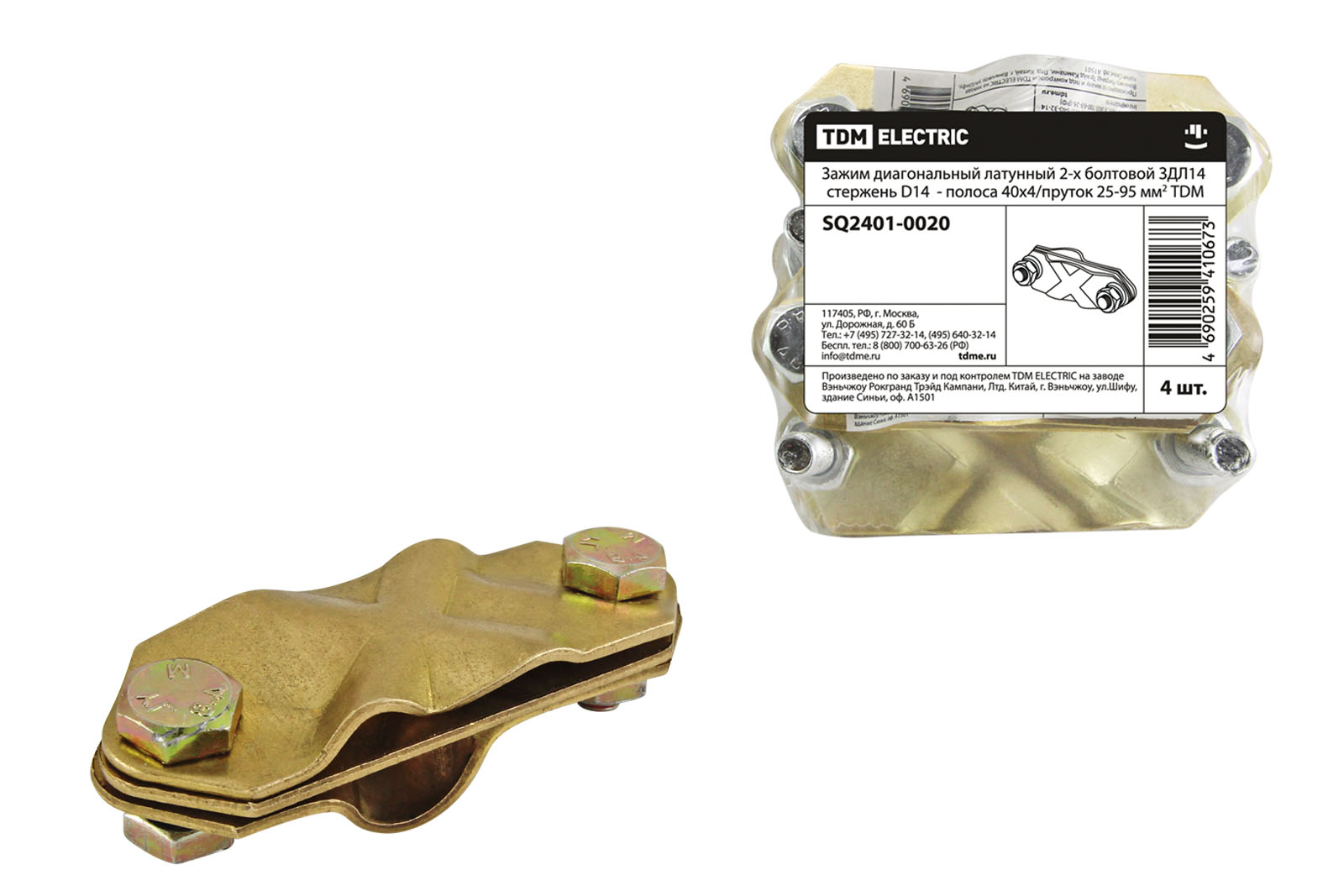 Наименование: Зажим диагональный латунный 2-х болтовой ЗДЛ14 стержень D14 - полоса 40х4/пруток 25-95 мм2 TDM
