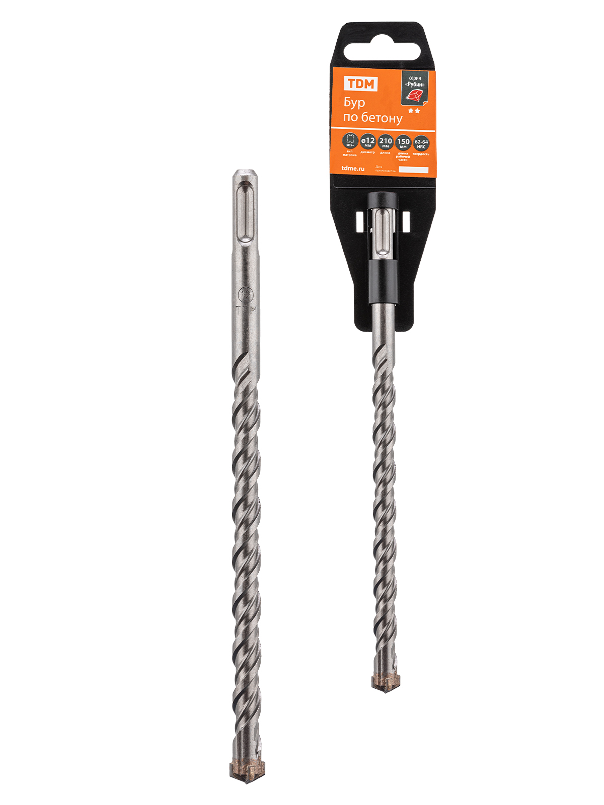 Бур по бетону, 12?210?150 мм, SDS-Plus, 4 резца, пластиковый держатель, 1 шт, "Рубин" TDM
