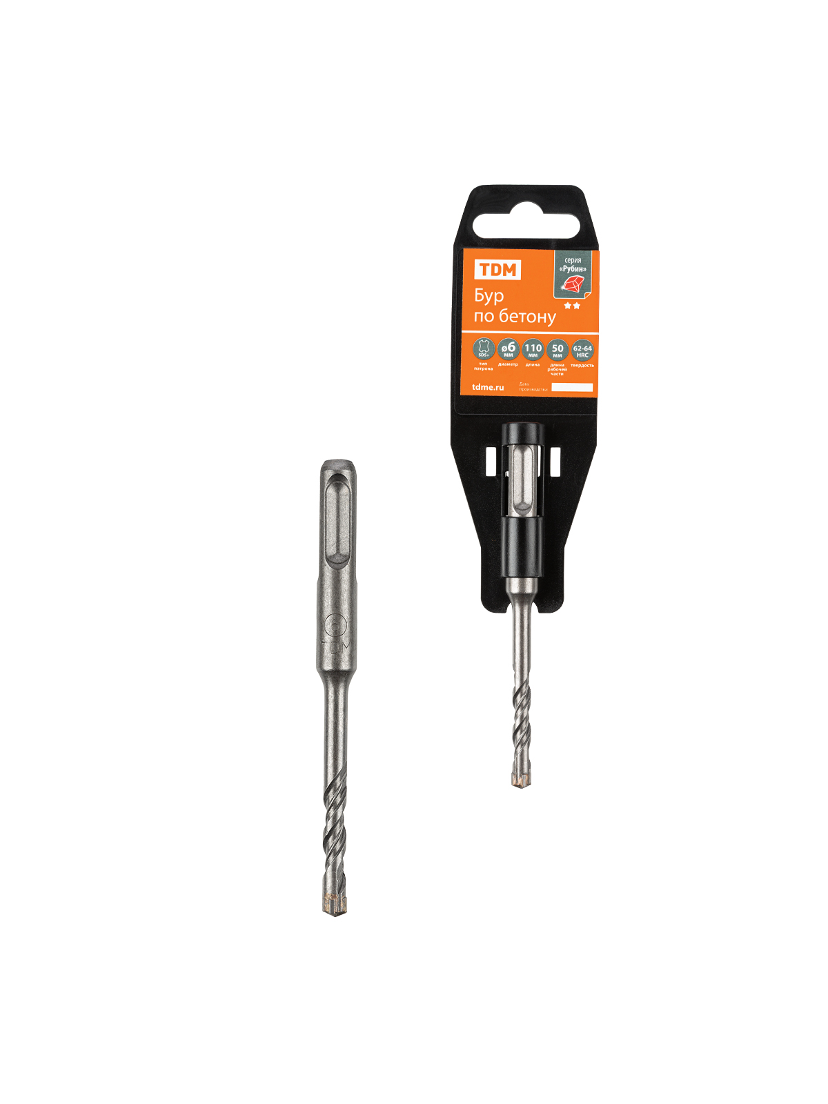 Наименование: Бур по бетону, 6?110?50 мм, SDS-Plus, 4 резца, пластиковый держатель, 1 шт, "Рубин" TDM