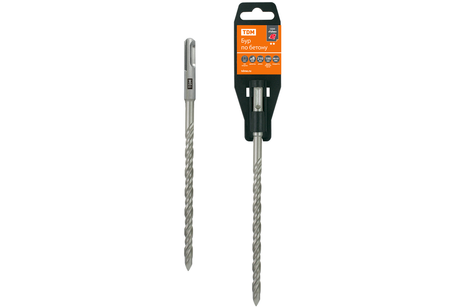 Наименование: Бур по бетону, 8?210?150 мм, SDS-Plus, 2 резца, пластиковый держатель, 1 шт, "Рубин" TDM