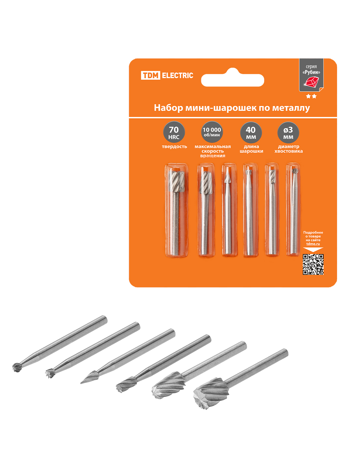 Наименование: Набор мини-шарошек шлифовальных, ? 3 мм, L 40 мм, по металлу, 6 шт, "Рубин" TDM